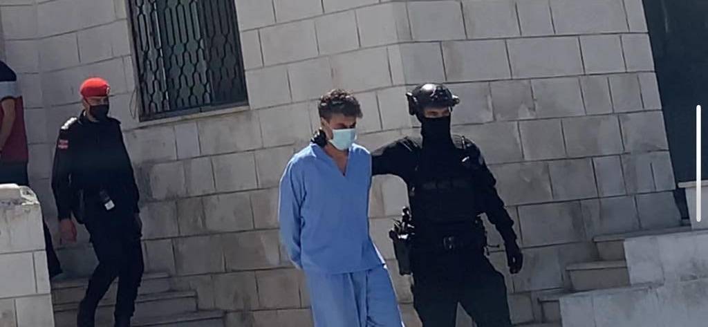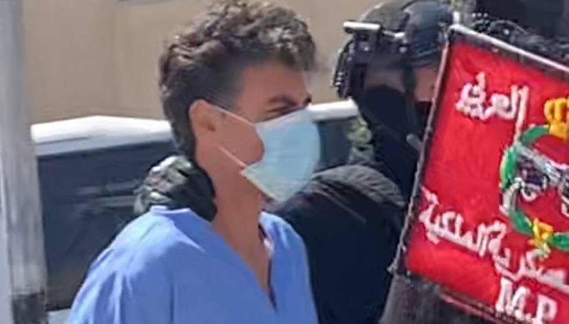 ظهر المتهم في قضية الفتنة الشريف حسن بن زيد ، الإثنين ، بالبدلة الزرقاء الخاصة بالموقوفين، لحظة خروجه من محكمة أمن الدولة