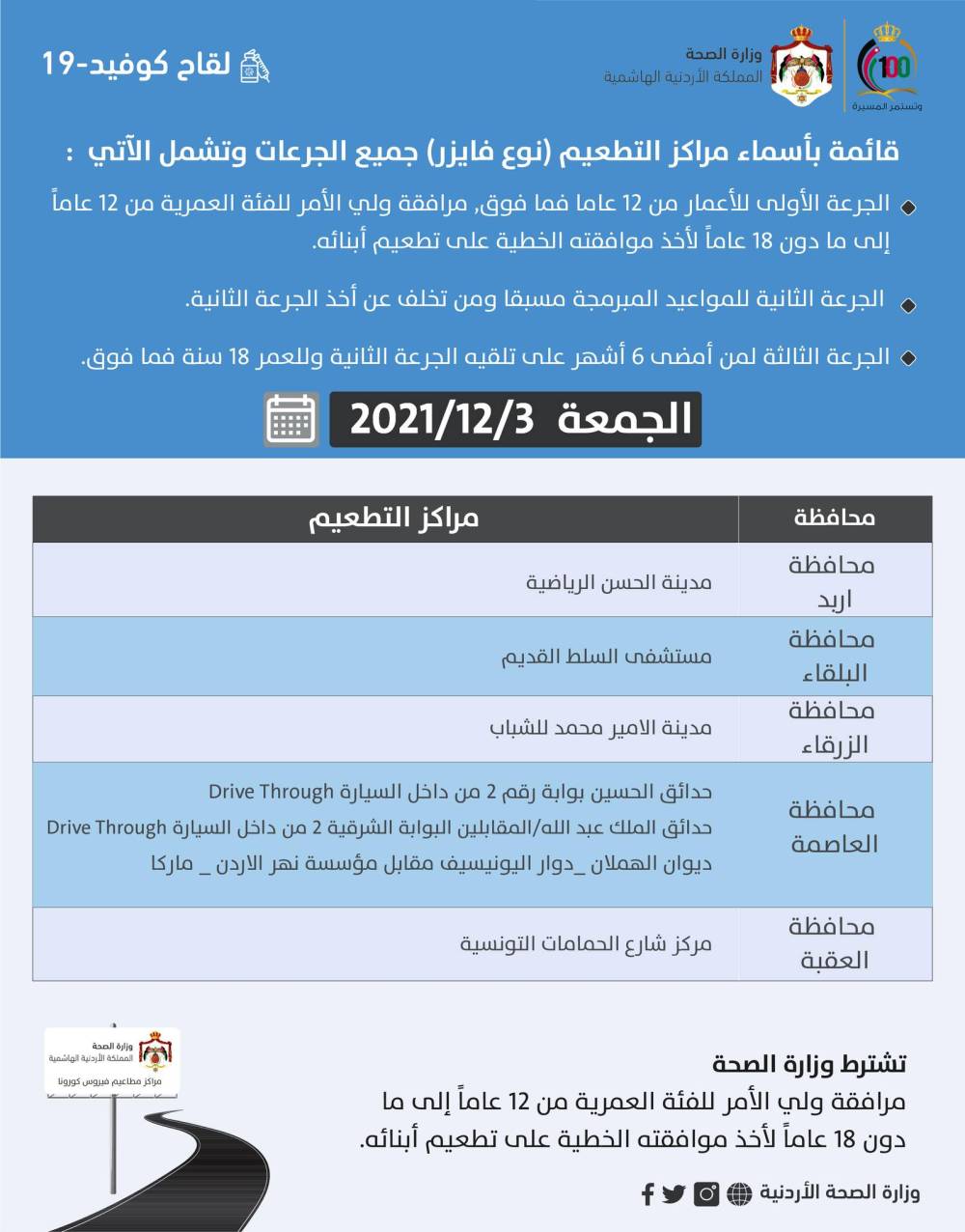 ليوم الجمعة التي يتوافر فيها مطاعيم "فايزر” لجميع الجرعات.