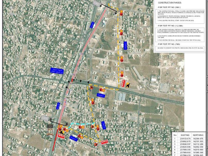 بطول 1 كم يومي الجمعة والسبت، وذلك لإجراء حفريات اختبارية من قبل وزارة المياه