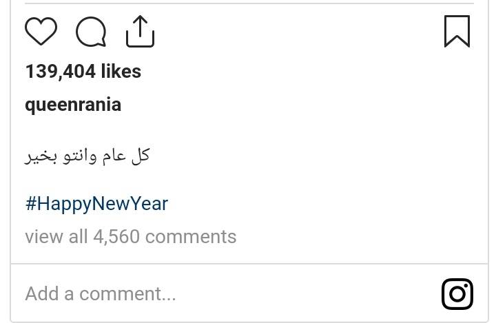 وقالت جلالتها عبر انستغرام "كل عام وانتو بخير".