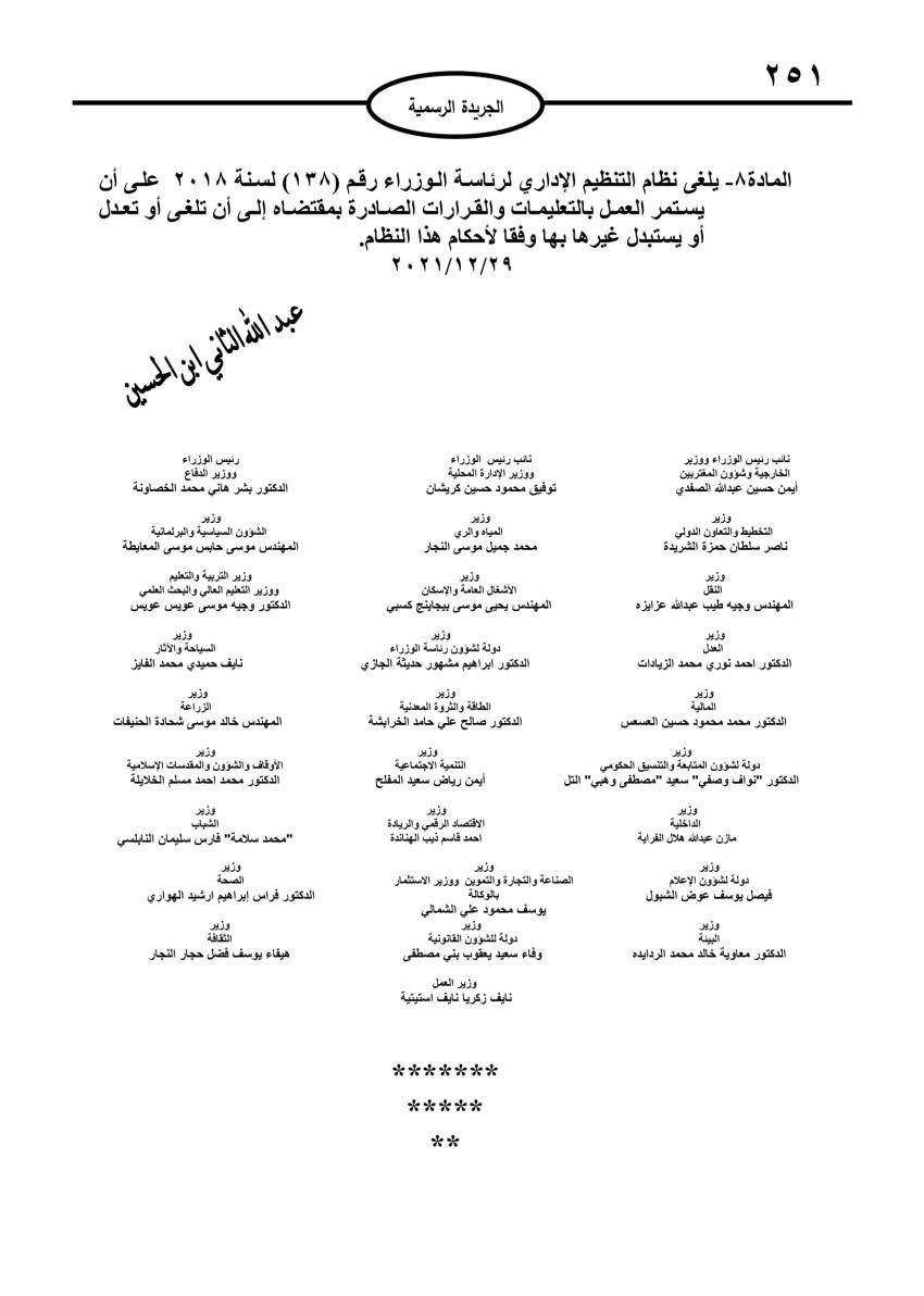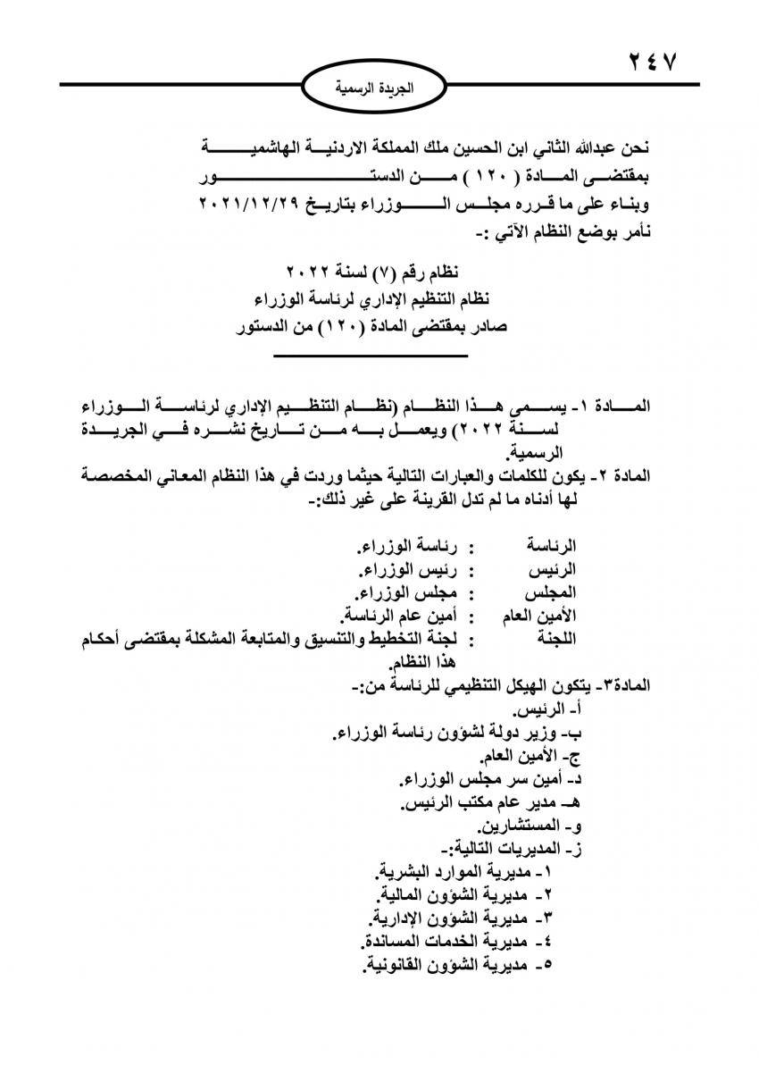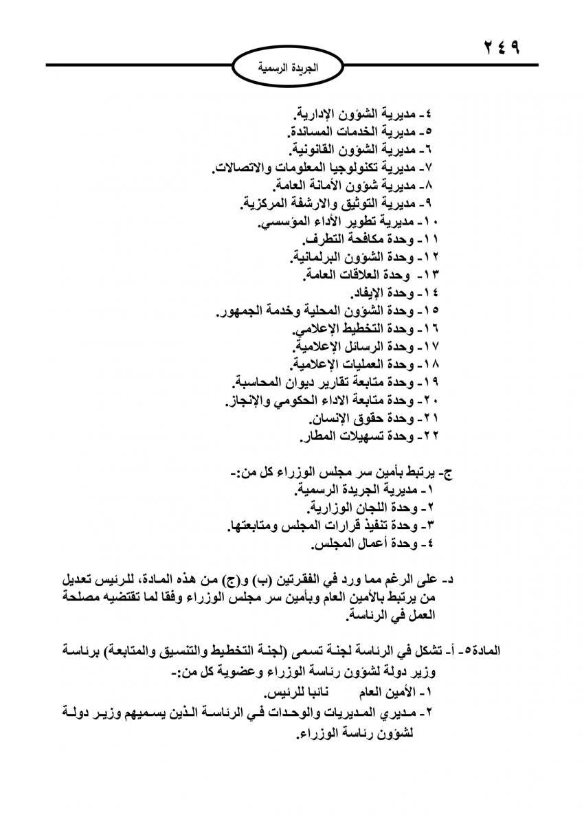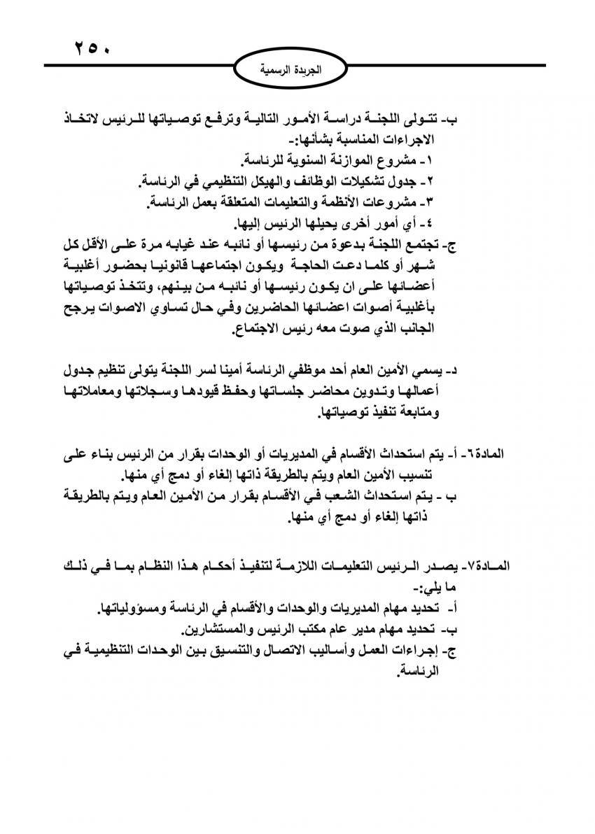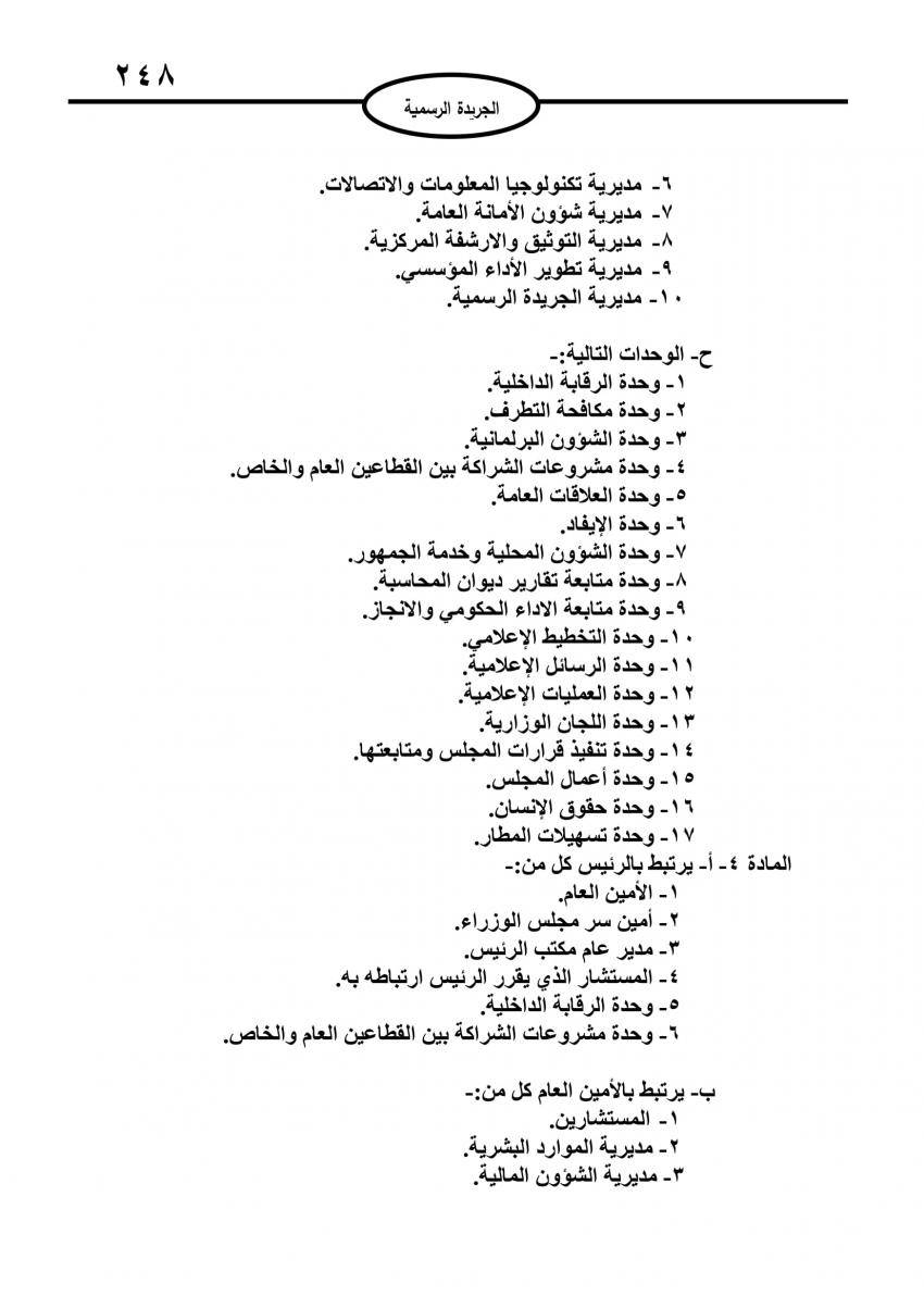 صدر في عدد الجريدة الرسمية اليوم الاربعاء نظام التنظيم الإداري الجديد لرئاسة الوزراء.