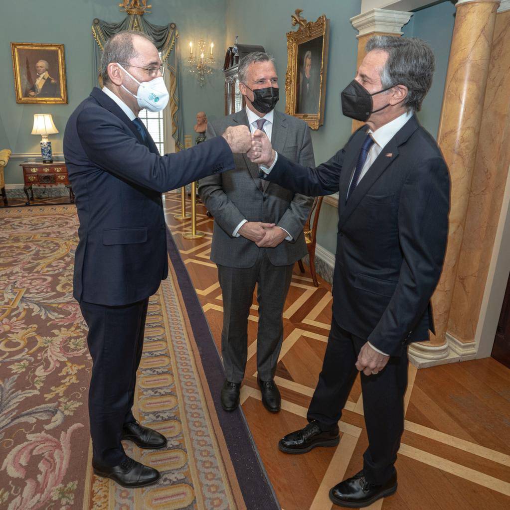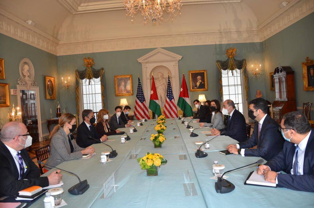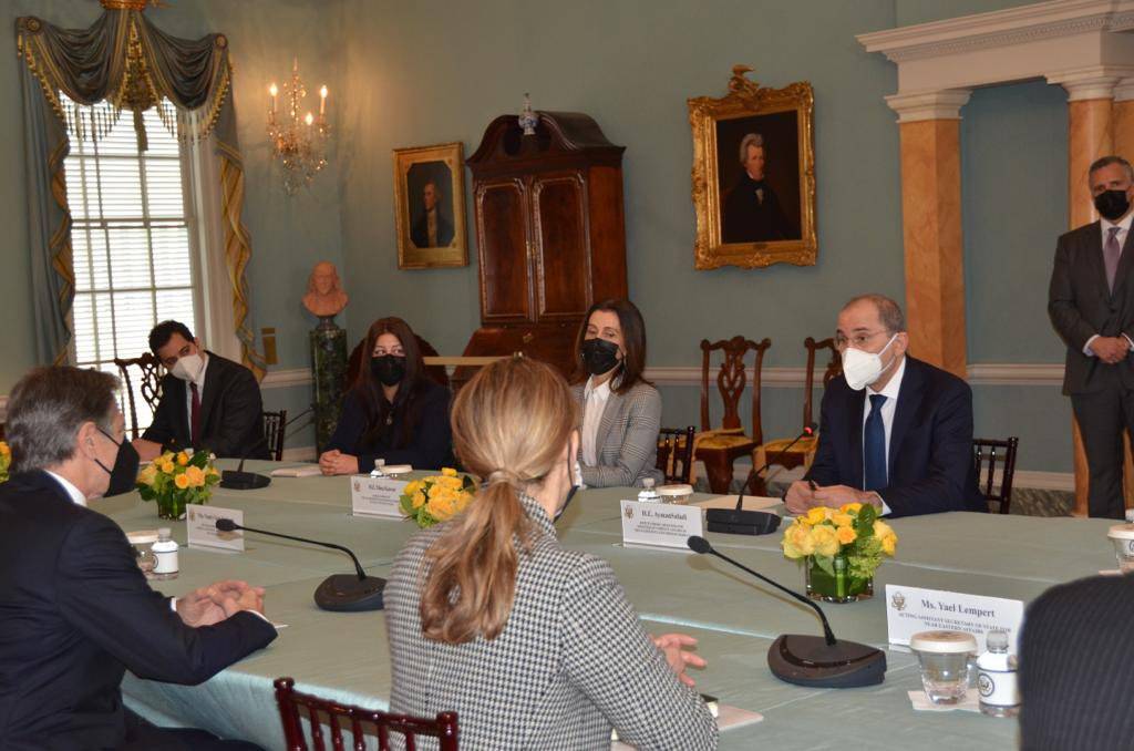 بدأ نائب رئيس الوزراء ووزير الخارجية وشؤون المغتربين أيمن الصفدي، الخميس، اجتماعاً موسعاً مع وزير خارجية الولايات المتحدة الأمريكية أنتوني بينكن في مبنى وزارة الخارجية الأمريكية في العاصمة واشنطن.