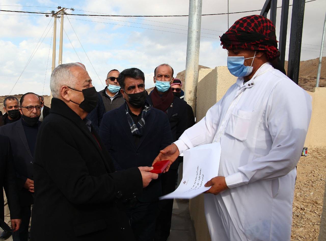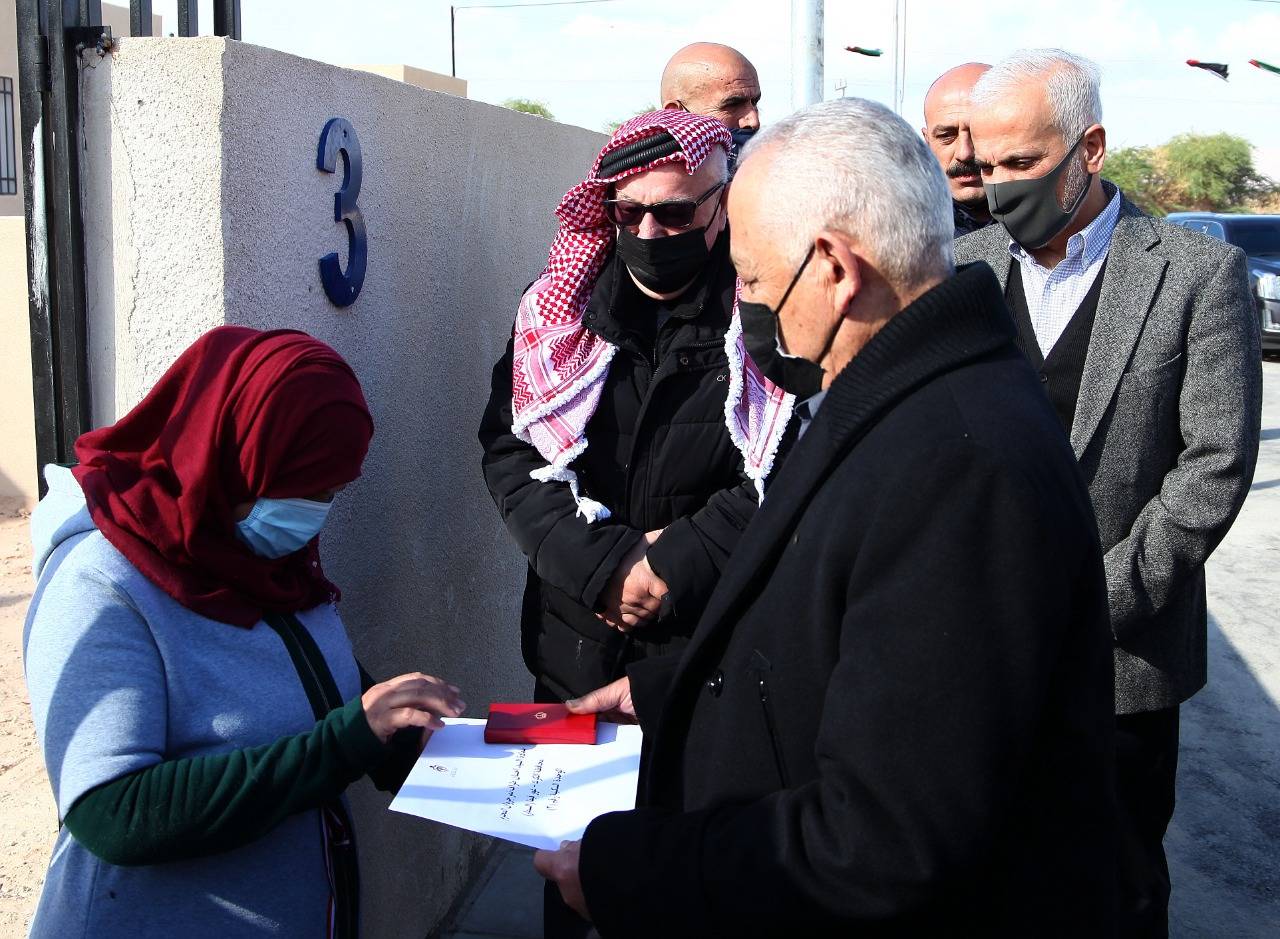 كما سلّم العيسوي مسكناً جديداً لإحدى الأسر في المحافظة، أمر به جلالة الملك، نظراً لما تُعانيه من ظروف اقتصادية ومعيشية صعبة.