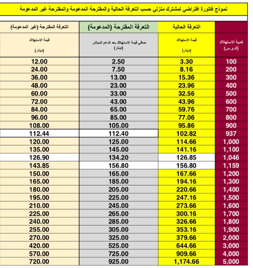 وأضاف أن الشرائح غير المدعومة تشمل شريحتين الأولى من 1-1000 كيلو واط وسعر التعرفة 120 فلس، أما الشريحة الثانية أكثر من 1000 كيلو واط يكون السعر 150 فلس لكل كيلو واط .