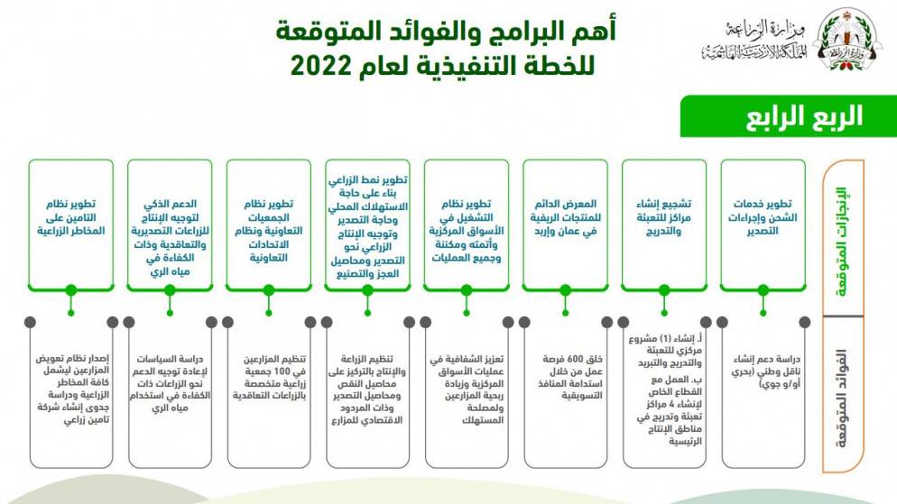 الواقع،وأيضا تهدف الخطة إلى تمكين المزارع الأردني في القضايا المرتبطة
