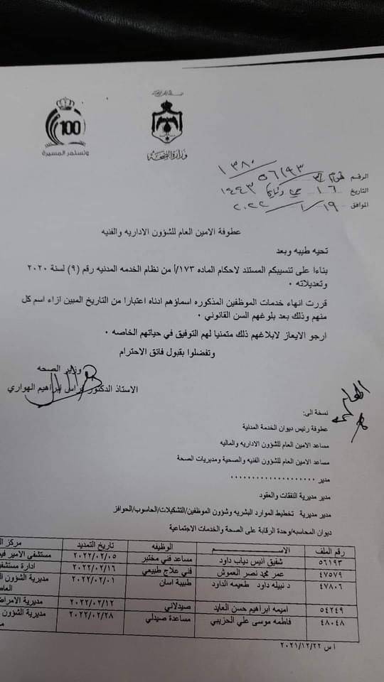 قرر وزير الصحة فراس الهواري ، مساء الاربعاء ، احالة عدد من موظفي الوزارة الى التقاعد
