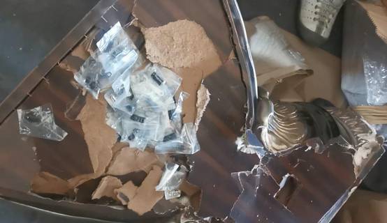 وأضاف الناطق الاعلامي بأنه تم الاشتباه بالشاحنة الواردة إلى المركز والمحملة بالاثاث حيث تم تحويلها إلى جهاز الفحص بالاشعة (Xray) وتم العثور على المهربات مخبأة بمخابئ سرية داخل الاثاث وتم تنظيم محضر ضبط بالمهربات والتحفظ عليها لحين استكمال الإجراءات القانونية.
