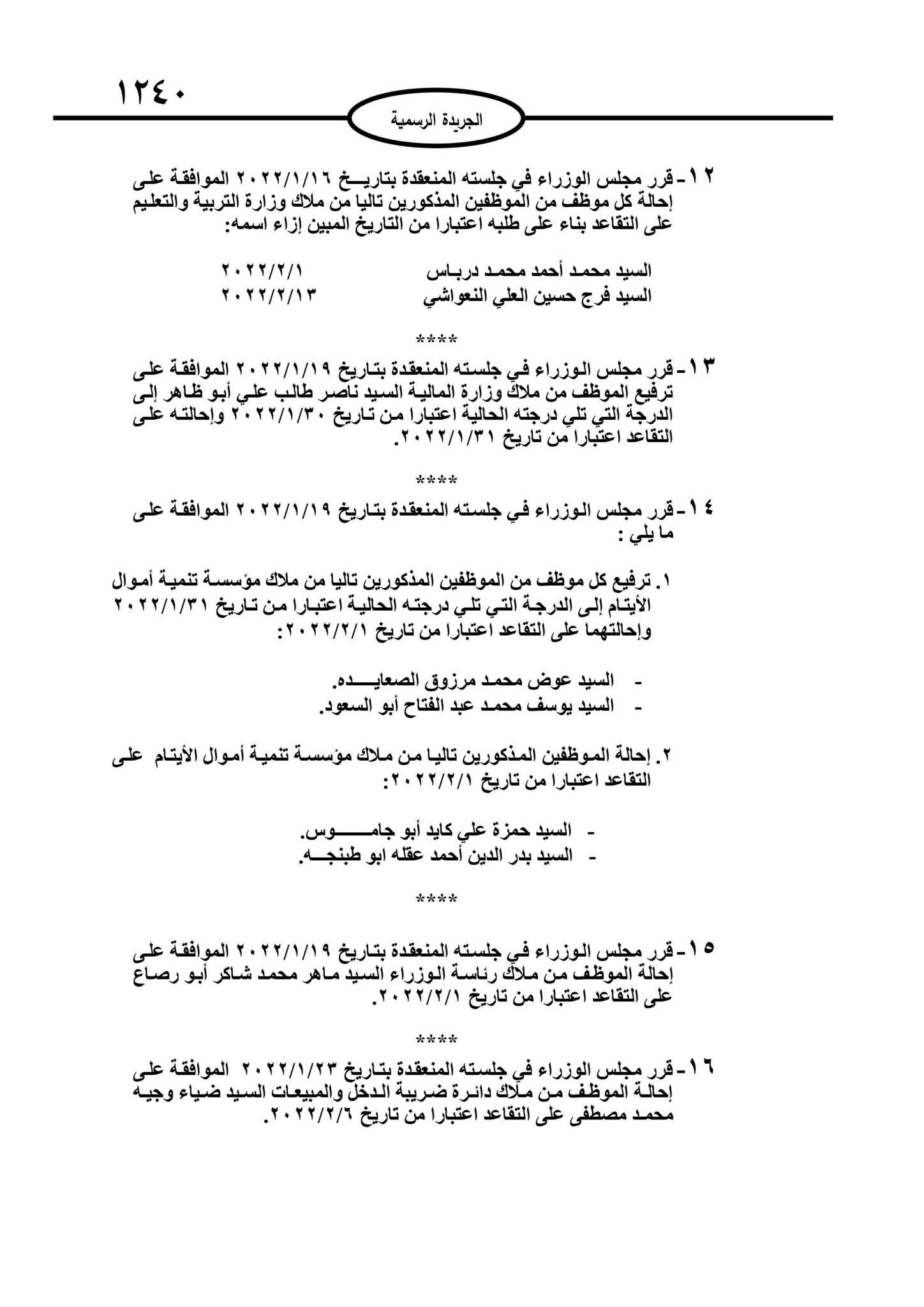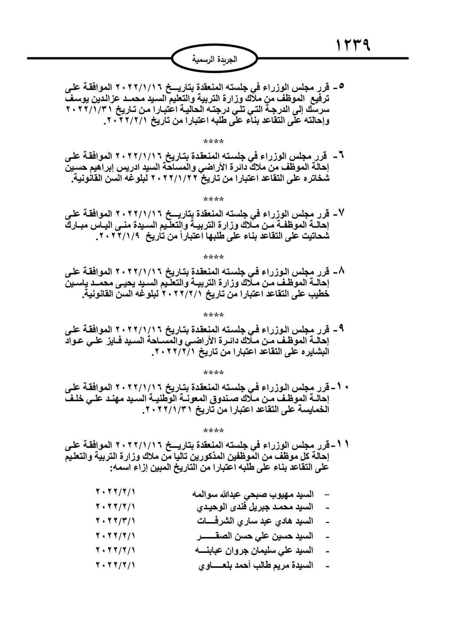 وتالياً أسماء المحالين على التقاعد وفق ما نشر في الجريدة الرسمية، الثلاثاء: