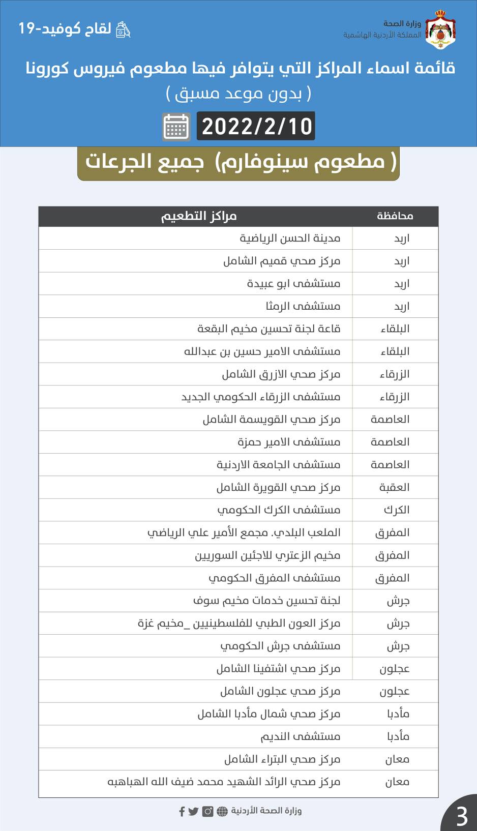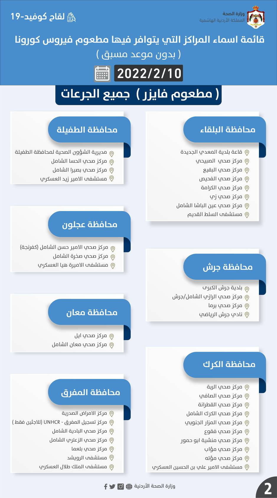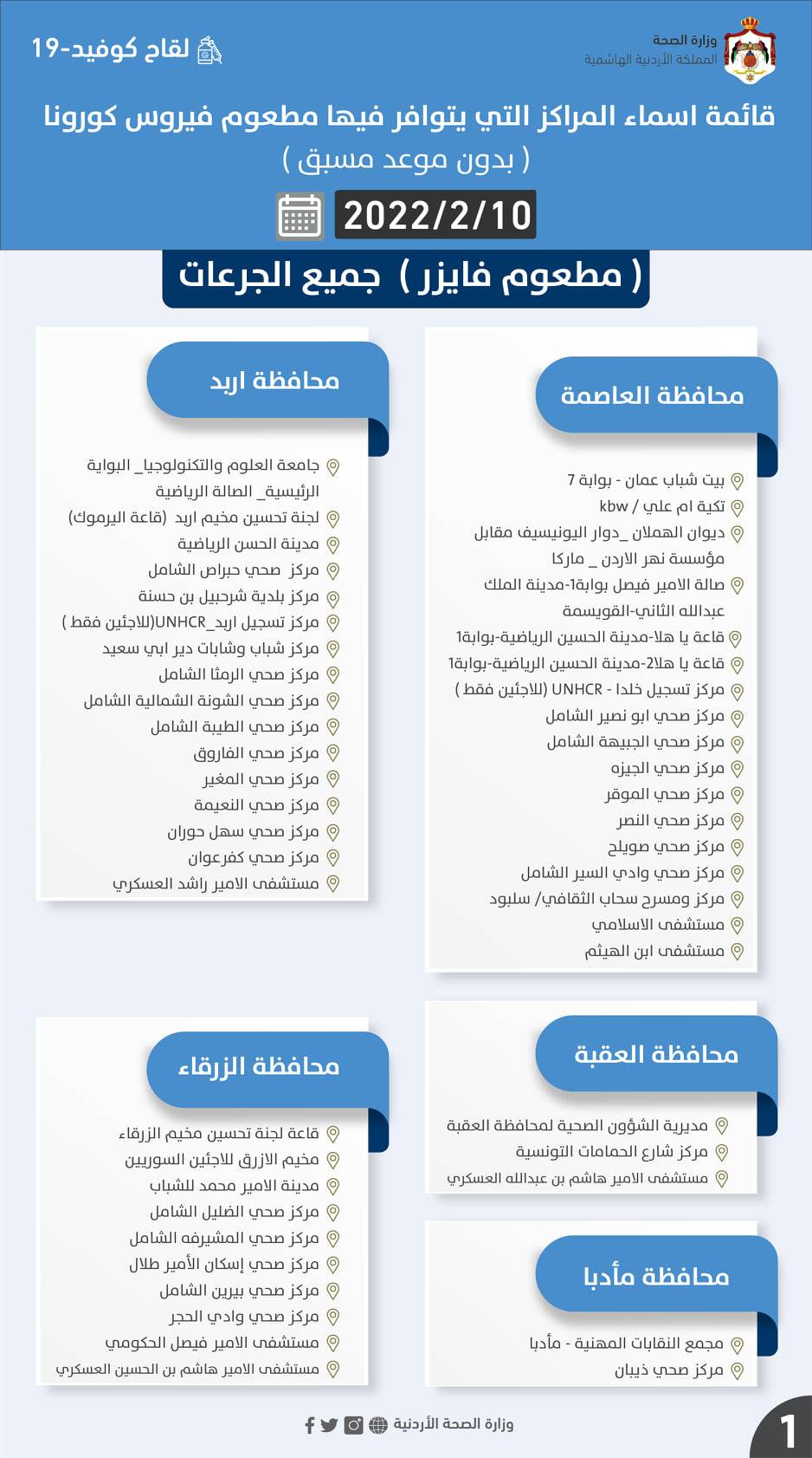 التي يتوافر فيها مطعوم فيروس كورونا (بدون موعد مسبق) وبجميع الجرعات ليوم الخميس.