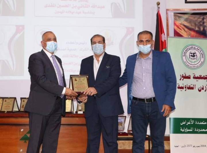 وفي نهاية الحفل تم تكريم الدكتور سليمان علواني رئيس جمعية اعمال الساحل الشمالي في جمهورية مصر العربية كما تم تكريم قادة الأجهزة الأمنية والعسكرية والمشاركين في الاحتفال من قبل راعي الحفل المهندس نايف البخيت رئيس سلطة منطقة العقبة الاقتصادية الخاصة و رئيس جمعية صقور الأردن التعاونية السيد أكرم البطوش وذلك تقديرا لجهودهم المبذولة في خدمة الوطن والمواطن .