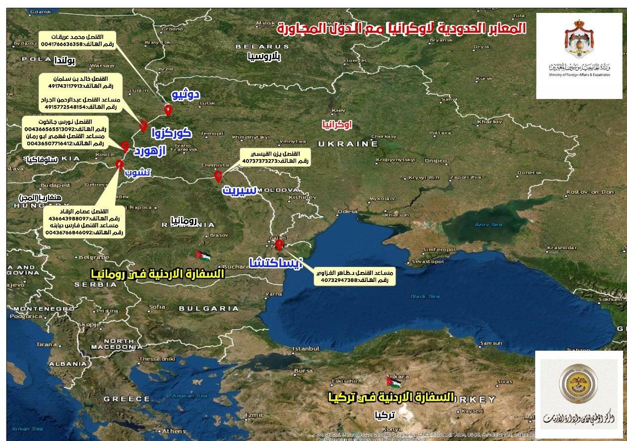 خريطة وأسماء المعابر والنقاط الحدودية بين أوكرانيا، والدول المجاورة "رومانيا و هنغاريا و سلوفاكيا وبولندا"، والتي يتواجد فيها