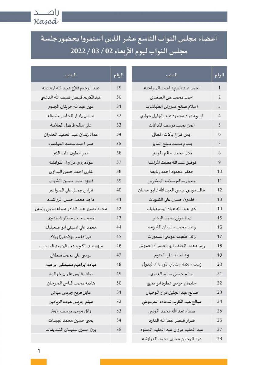 وينشر راصد أسماء البرلمانيين