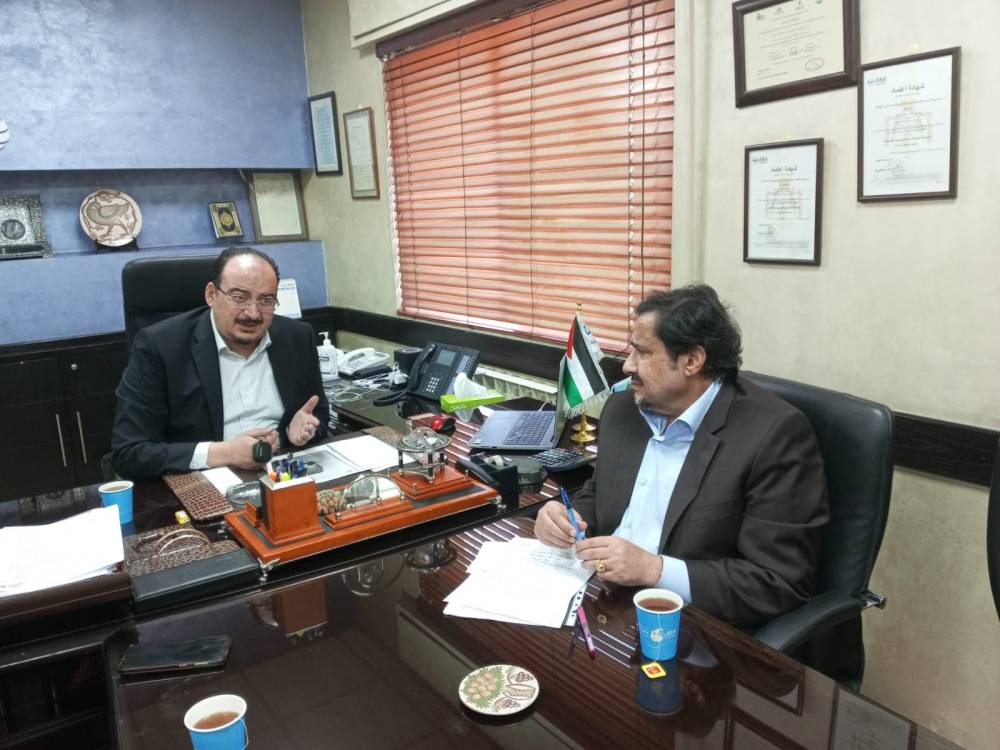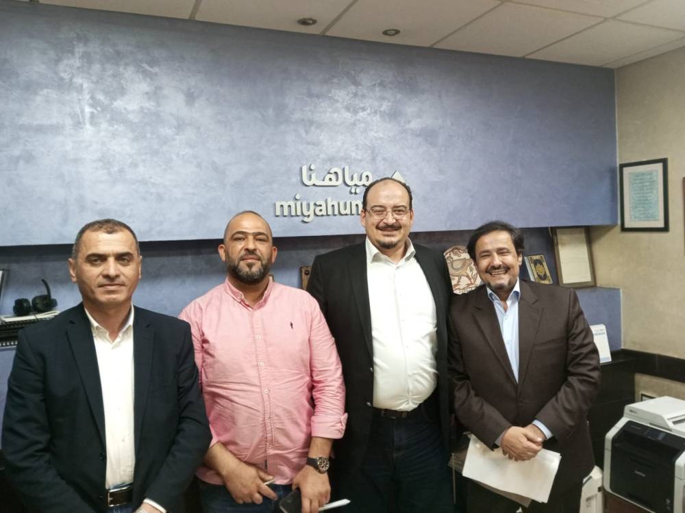 التقى المهندس أيمن الخضيري، يرافقه ممثل الفئة السادسة السيد خالد الجعار، المدير التنفيذي لشركة "مياهنا" المهندس محمد العوران، وذلك لمناقشة المشاكل والصعاب التي تواجه مقاولي الوصلات المنزلية والبنيه التحتية.