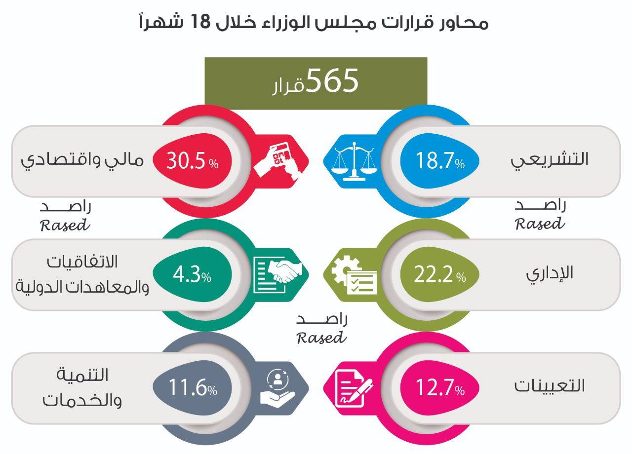 * 565 قراراً للحكومة خلال عام ونصف 30.5% منها ضمن محور الإصلاح الاقتصادي والمالي