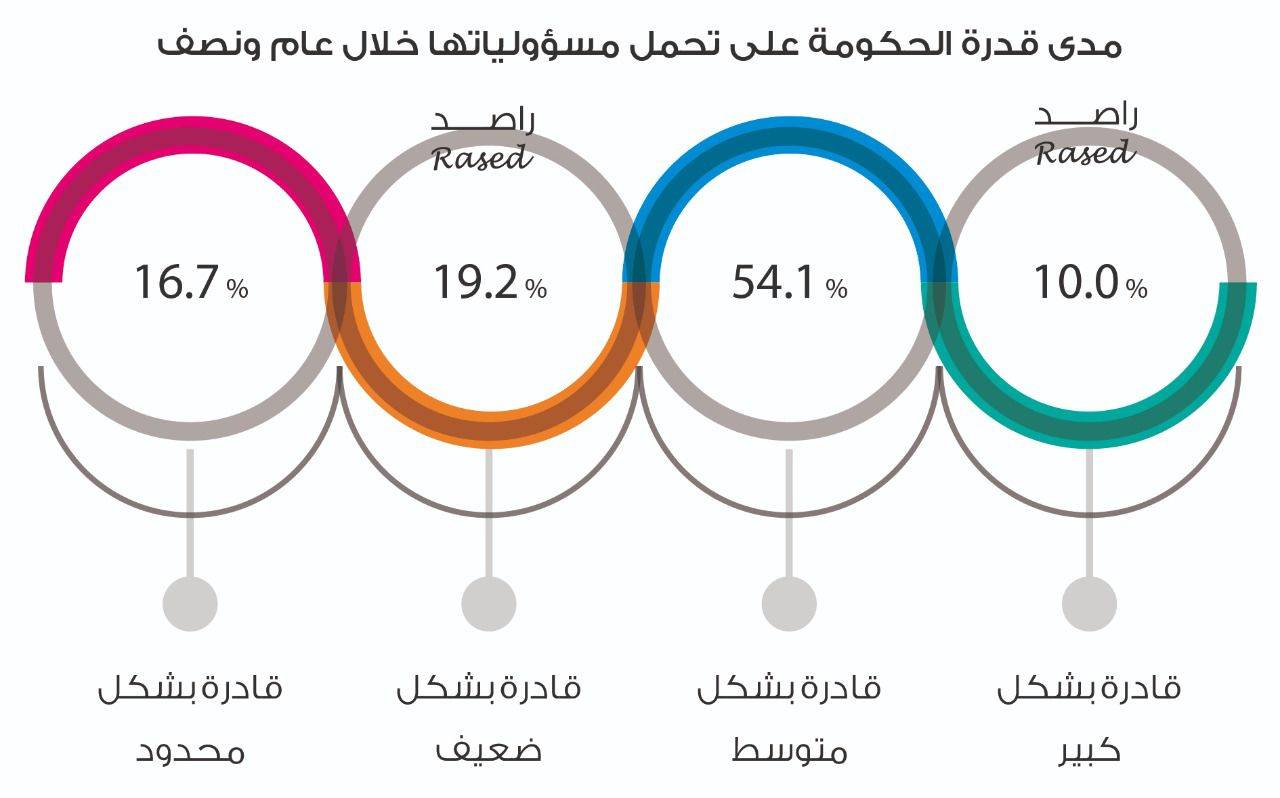 * 54.1% من النواب يرون أن الحكومة كانت قادرة على تحمل مسؤولياتها بشكل متوسط، و10% بشكل كبير