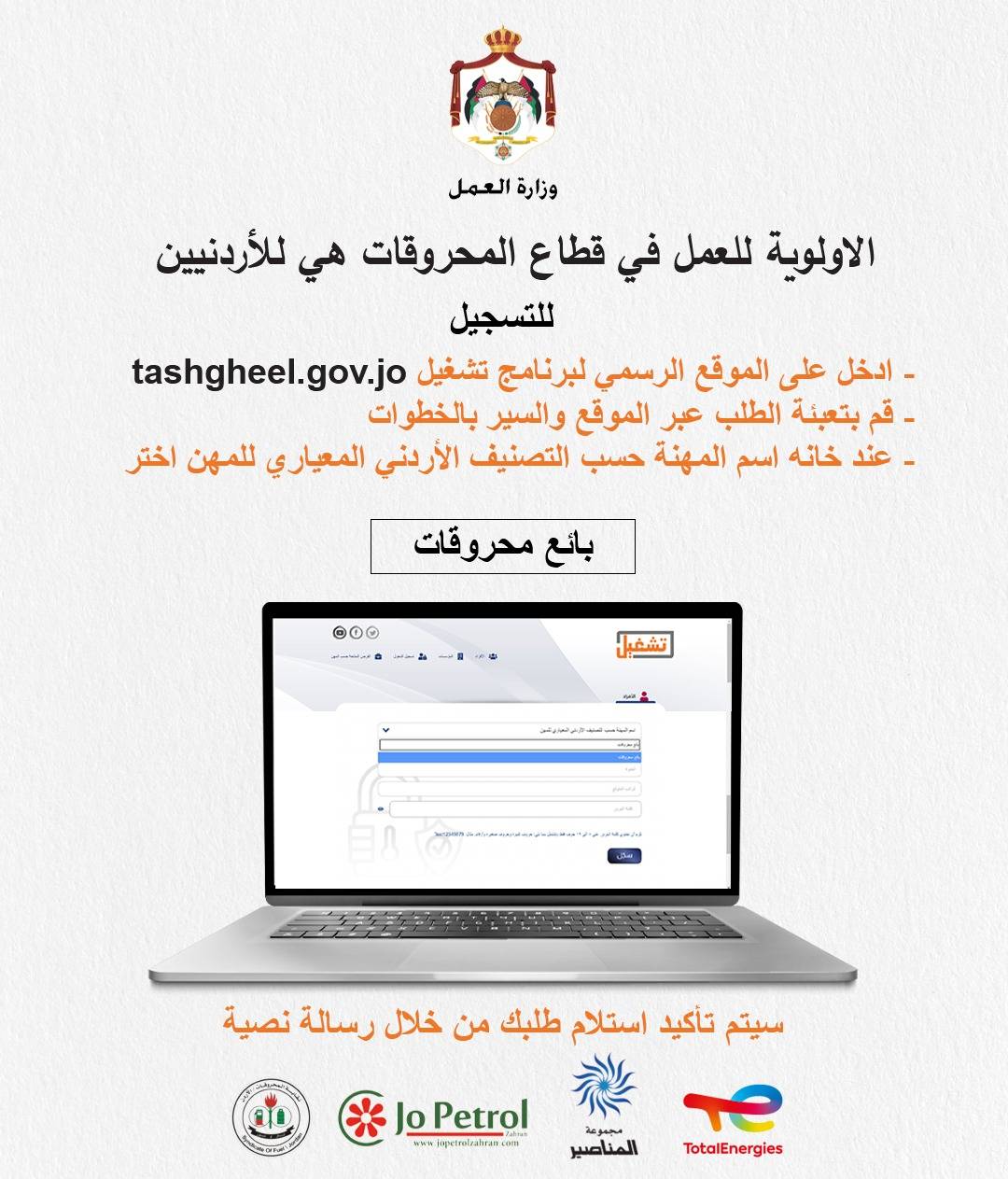وقعت وزارة العمل اليوم الأربعاء مذكرة تفاهم لإعطاء الأولوية لتشغيل الأردنيين في قطاع المحروقات مع النقابة العامة لأصحاب المحروقات ومستودعات ووكالات توزيع الغاز وعدد من شركات تسويق المشتقات النفطية (توتال، جوبترول، المناصير) لتشغيل الأردنيين فقط في قطاع المحروقات، وبحسب توقعات هذه الشركات سيتم تشغيل 1500 أردني من الذكور والإناث خلال عام.