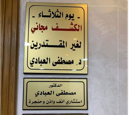 وتداول عدد من رواد مواقع التواصل الاجتماعي صورة من داخل عيادة "الحسامي" كتب عليها" الثلاثاء يوم مجاني لغير المقتدرين "