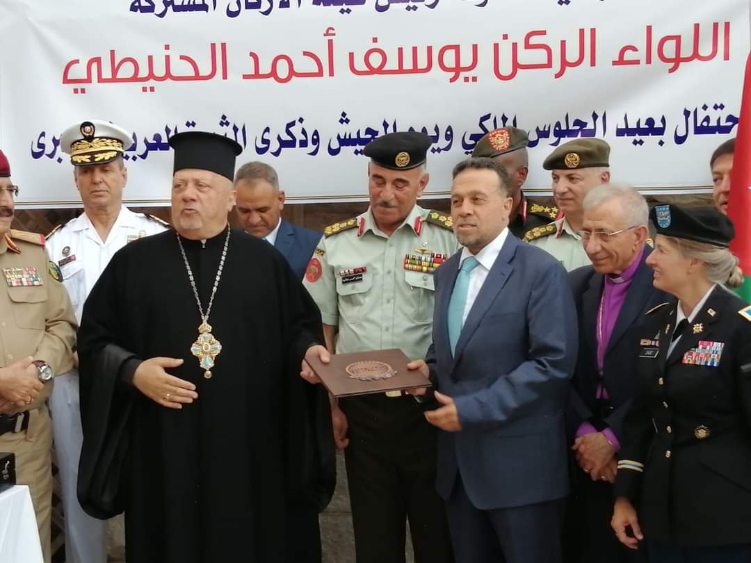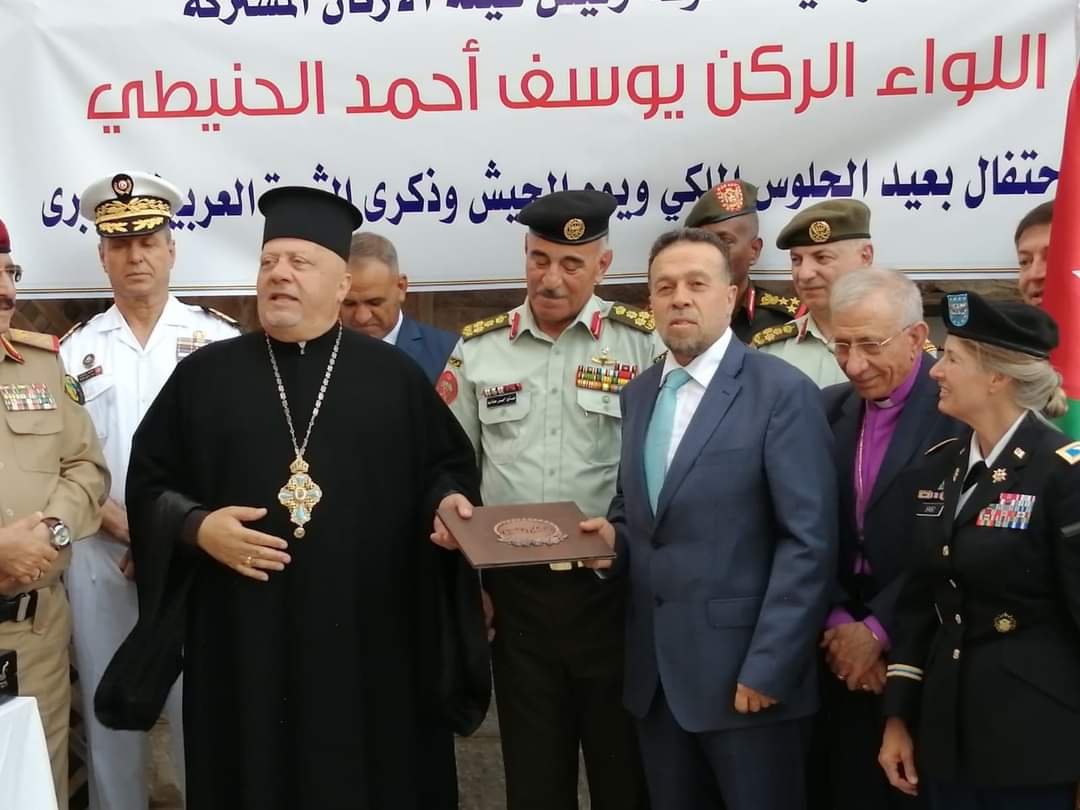 واثنى مدير المركز الأب نبيل حداد في الاحتفال الذي اقيم مساء السبت بمناسبة عيد الجلوس الملكي ويوم الجيش والثورة العربية الكبرى تحت رعاية رئيس هيئة الأركان المشتركة اللواء يوسف الحنيطي على جهود المهندس العجلوني في خدمة الإعلام المحلي والعربي، واسهاماته الإعلامية على الصعيد الدولي.
