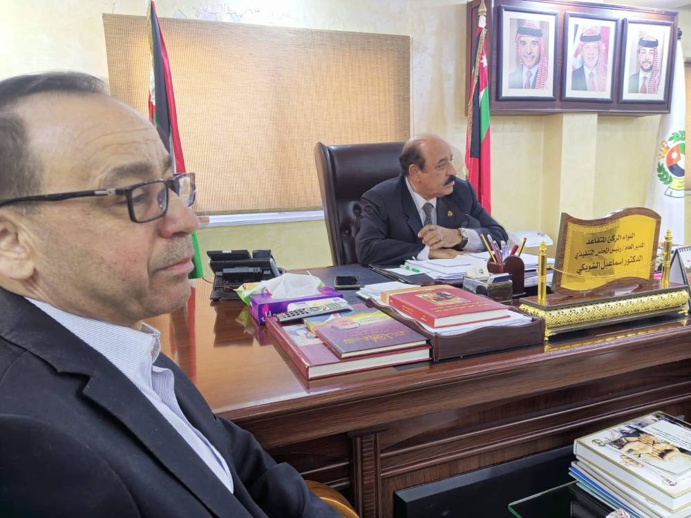 إستقبل مدير عام مؤسسة المتقاعدين العسكريين والمحاربين القدامى اللواء الركن المتقاعد الدكتور إسماعيل الشوبكي في مكتبة اليوم الثلاثاء ،أمين عام الاتحاد الدولي للسلام في الأردن المستشار أشرف قطيشات ويأتي اللقاء في إطار تكريم الاتحاد للقيادات الوطنية التي تساهم في خدمة الوطن والقيادة الهاشمية الحكيمة.