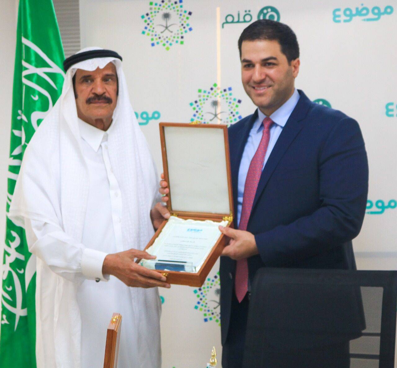 كما تضمّنت الزيارة تكريم رئيس مجلس إدارة هيئة الصحفيين السعوديين الأستاذ خالد المالك ورئيس وكالة الأنباء السعوديّة الدكتور فهد آل عقران، تقديراً لجهودهما في مواكبة وتحقيق رؤية المملكة العربية السعودية 2030 فيما يتعلق بالعناية باللغة العربية وتطويرها من خلال تقنيات الذكاء الاصطناعي، بما يتوافق مع رؤية موضوع .