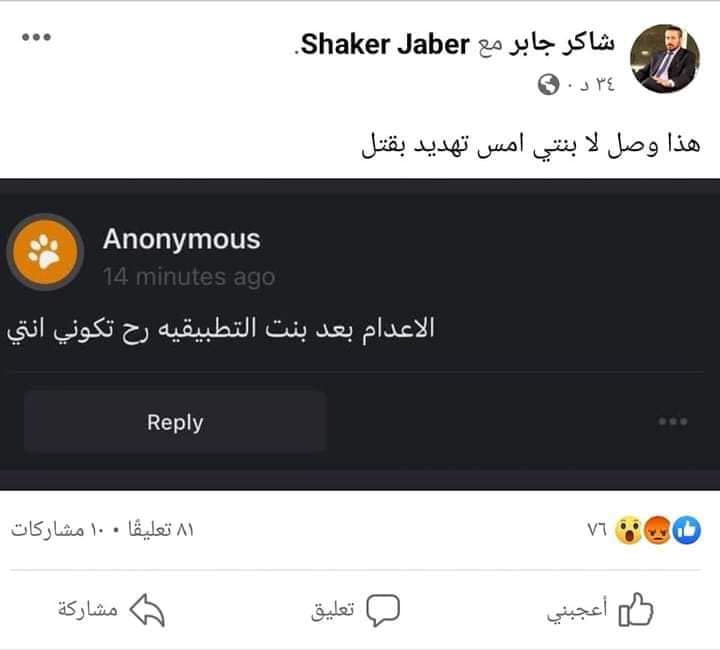 كشف الفنان الأردني شاكر جابر الأحد عن وصول رسالة تهديد بالقتل لابنته.