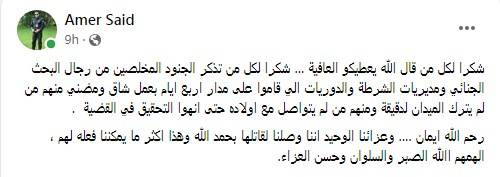 وكتب "رحم الله إيمان.. وعزاؤنا الوحيد أننا وصلنا لقاتلها بحمد الله وهذا أكثر ما يمكننا فعله لهم”.