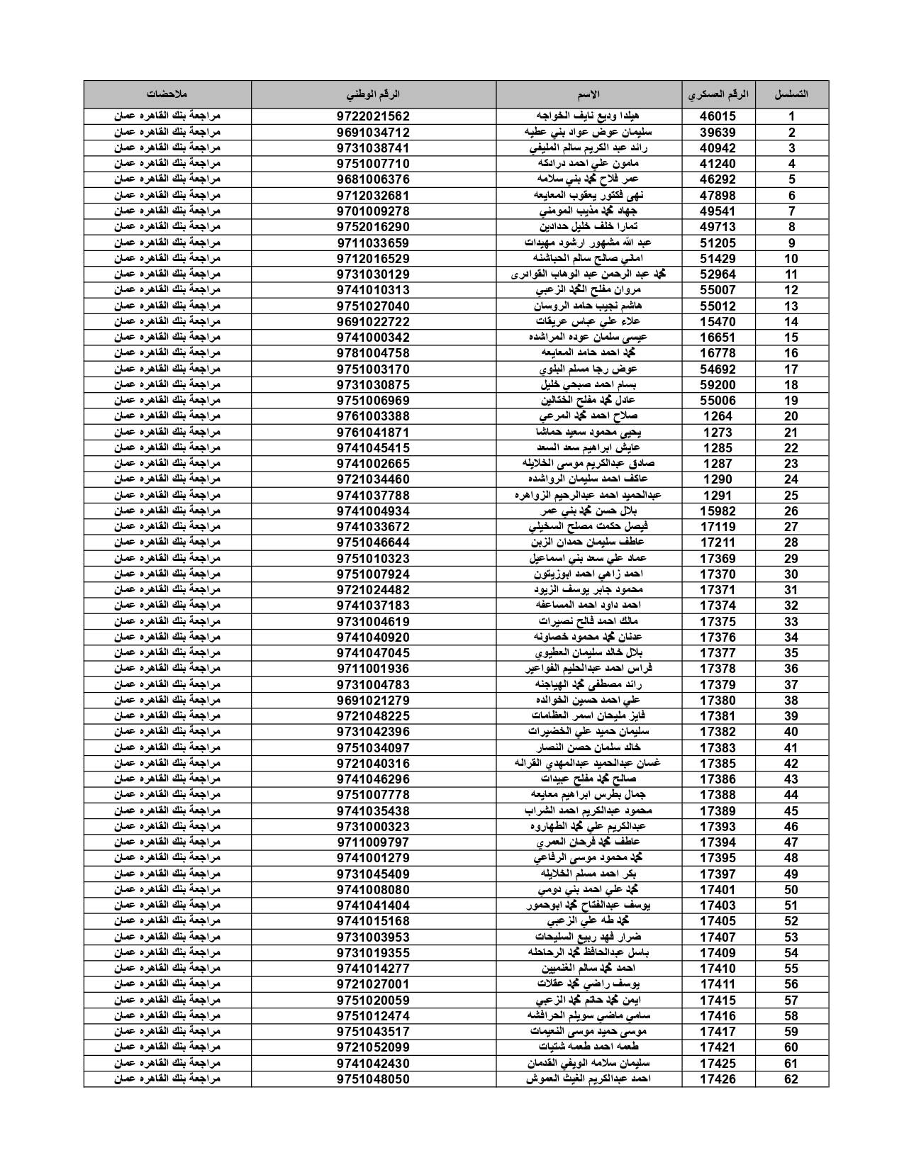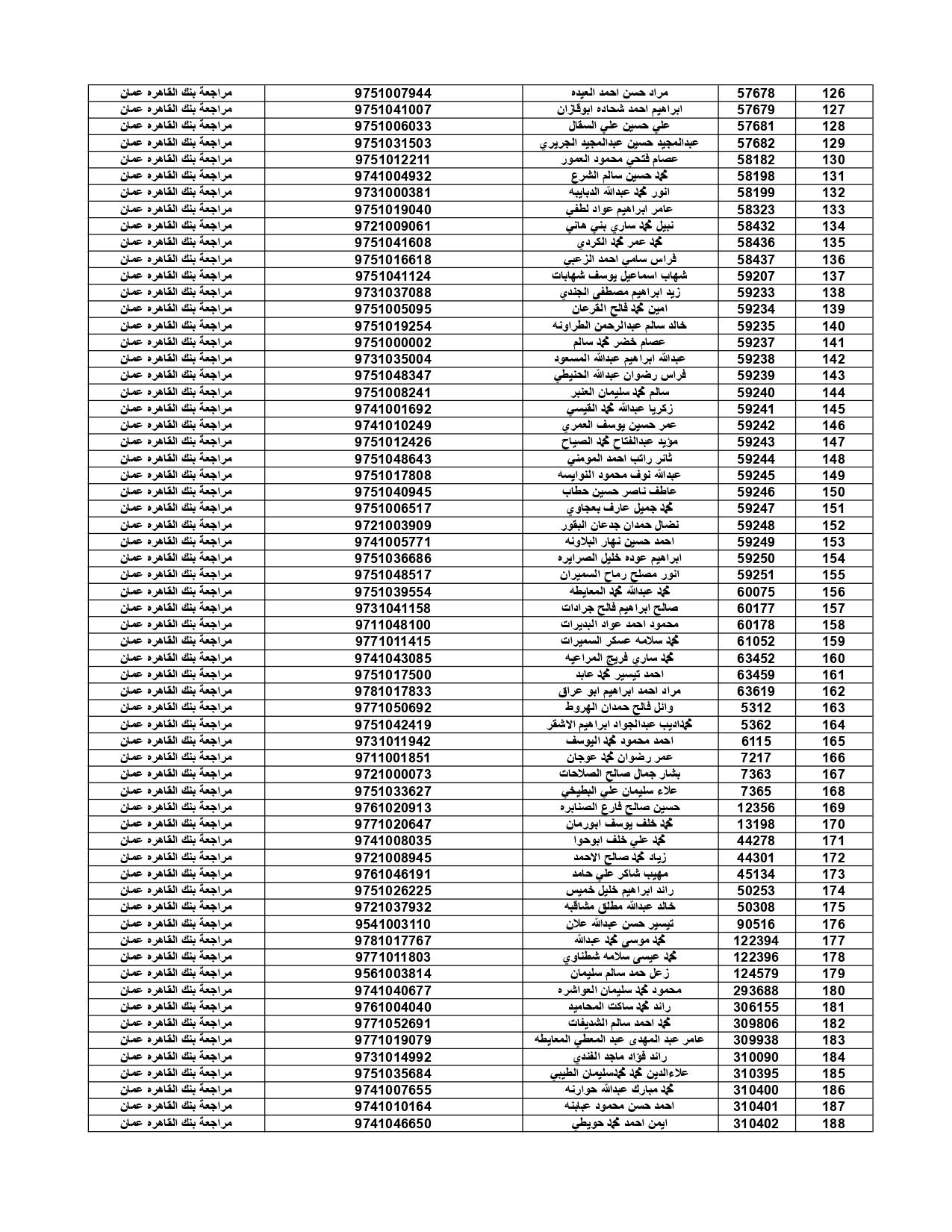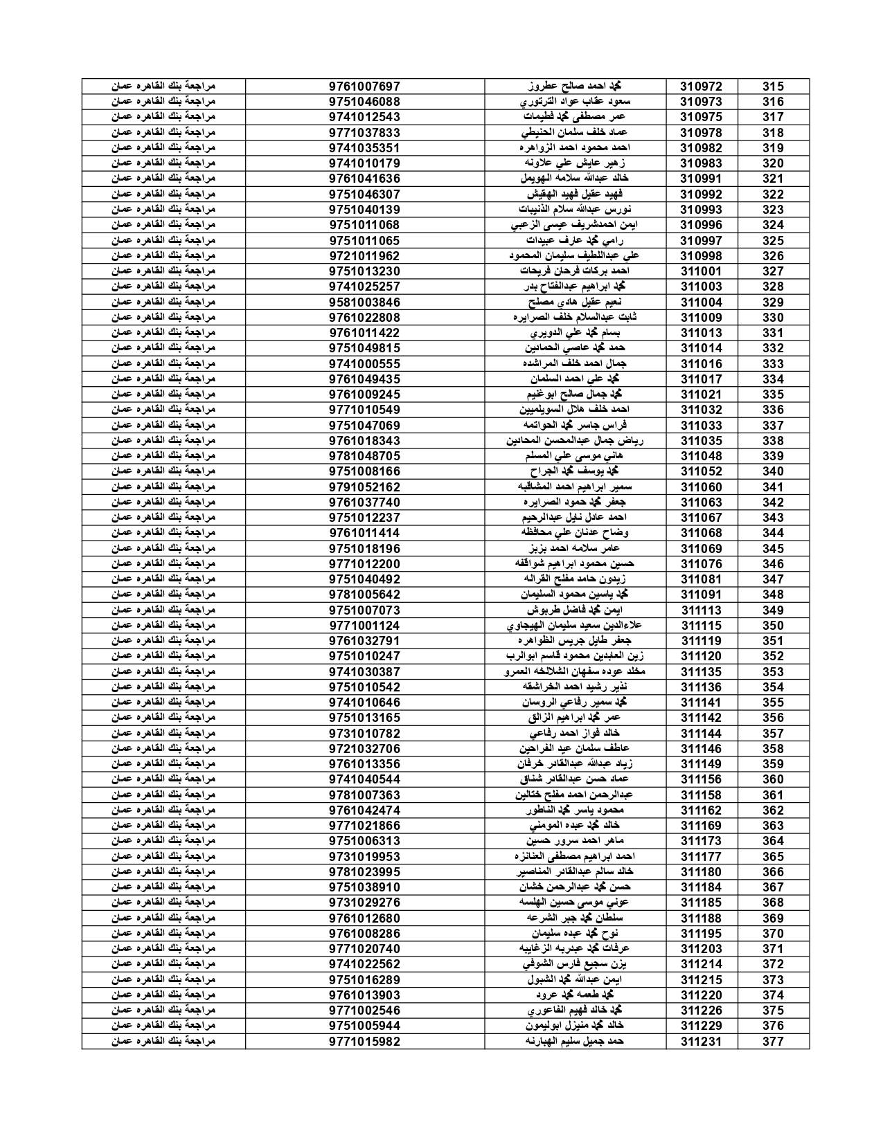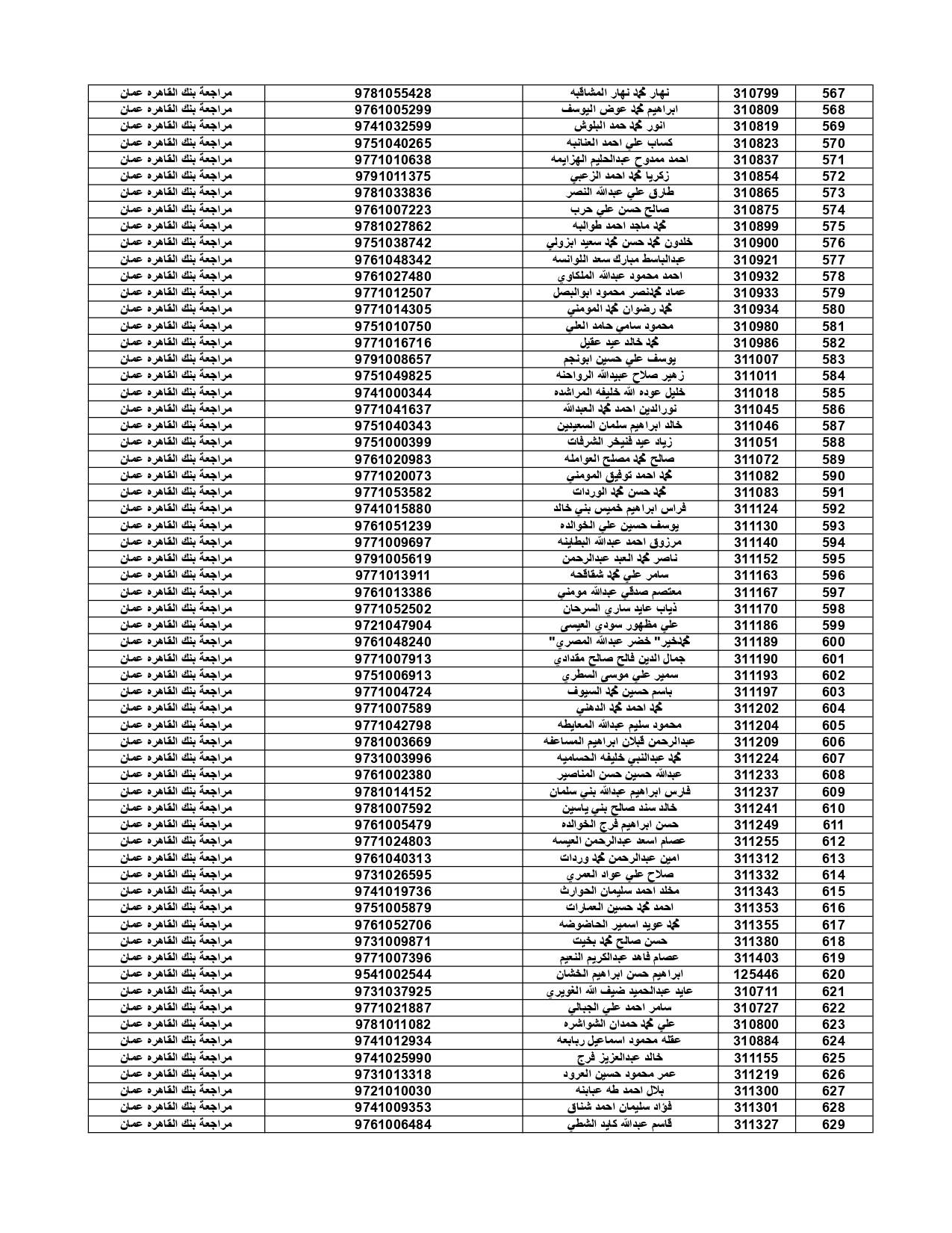 وعلى المستفيدين مراجعة بنك القاهرة عمان وكافة فروعه اعتباراً من صباح يوم الأثنين 4/7/2022 لاستلام قيمة القرض.