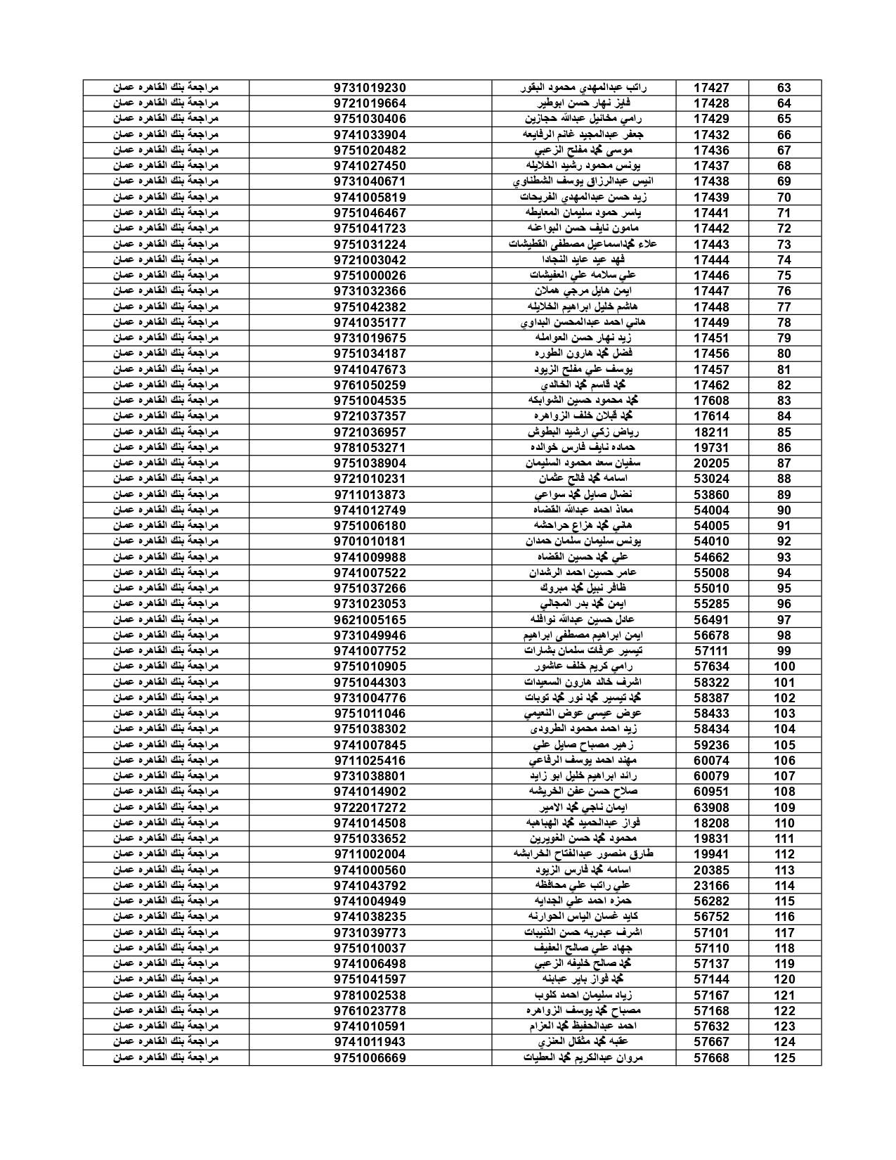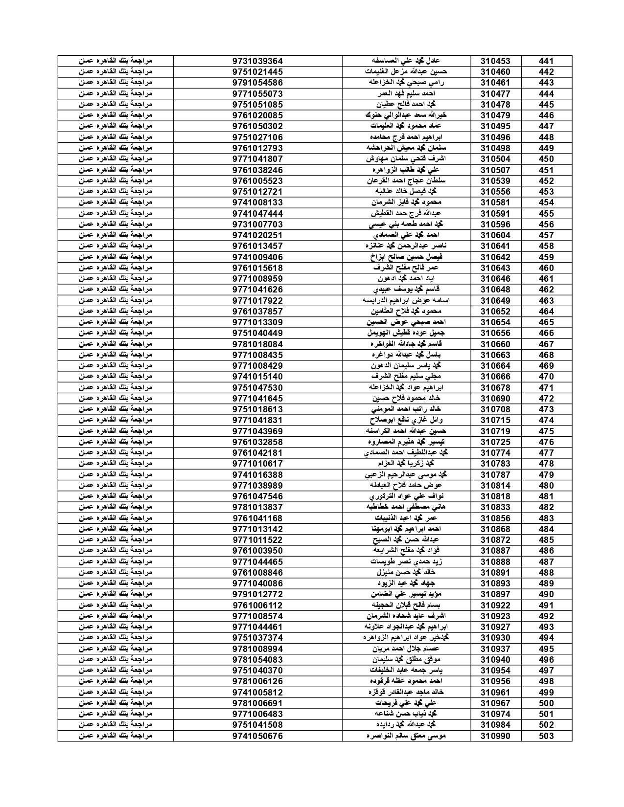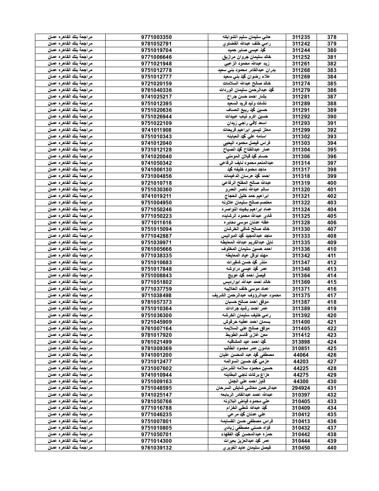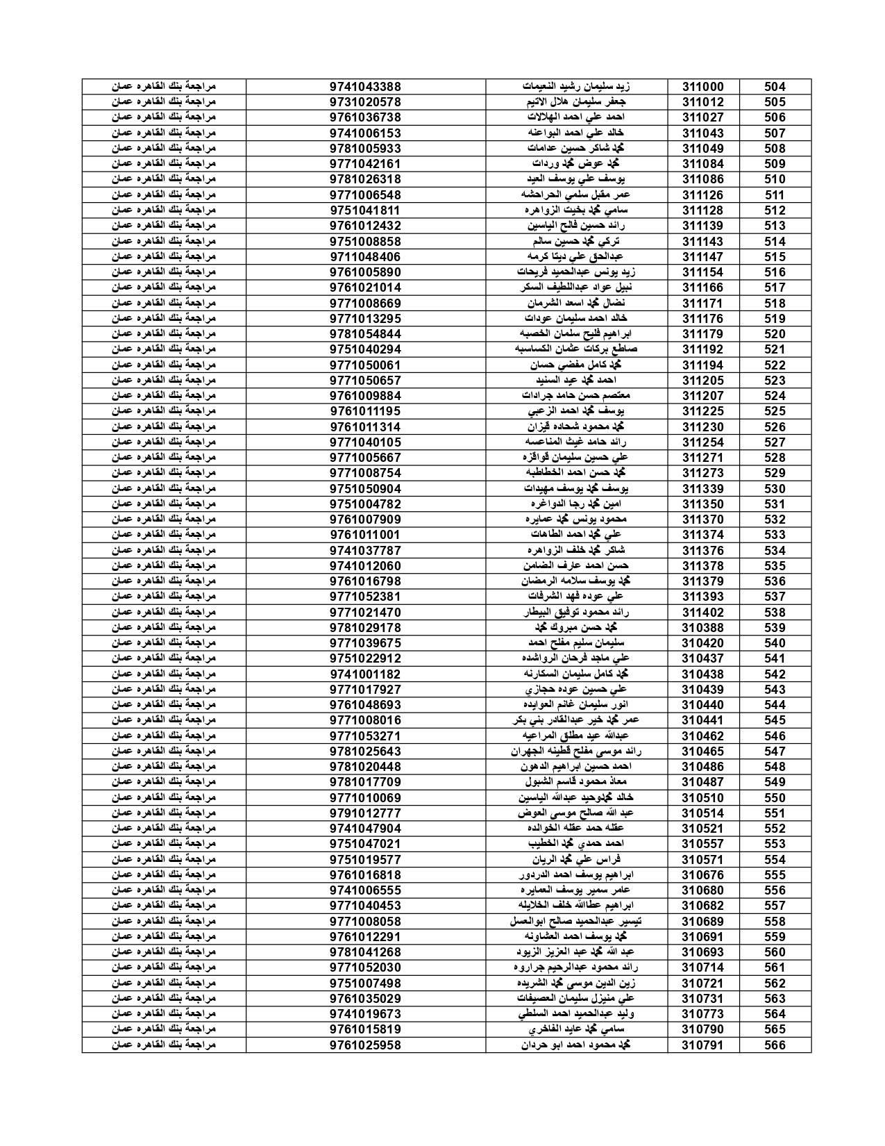 وعلى المستفيدين مراجعة بنك القاهرة عمان وكافة فروعه اعتباراً من صباح يوم الأثنين 4/7/2022 لاستلام قيمة القرض.
