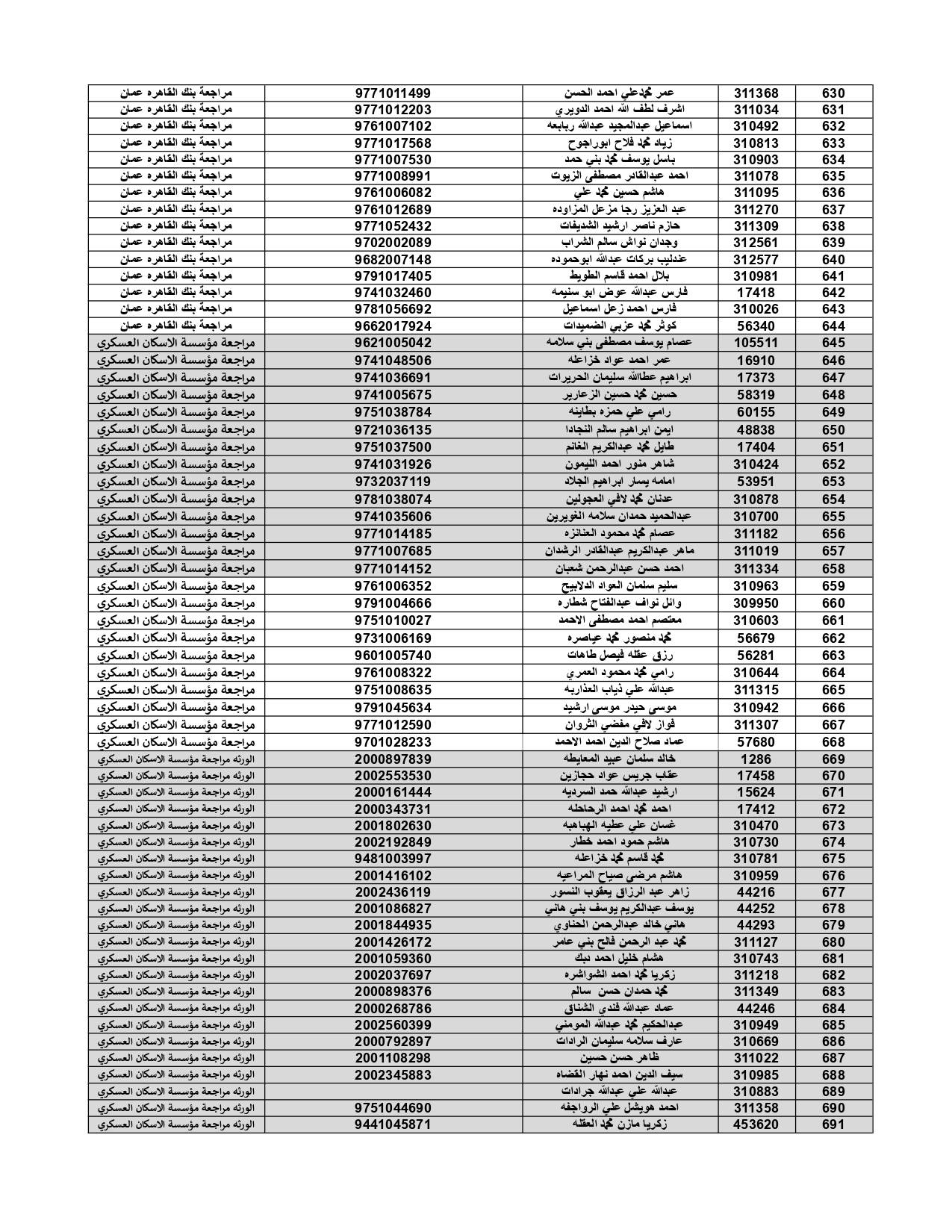 أعلنت القيادة العامة للقوات المسلحة الأردنية – الجيش العربي/ مديرية مؤسسة الإسكان والأشغال العسكرية، كشف بأسماء المستفيدين لقرض صندوق الإسكان لدفعة شهر تموز لعام 2022.