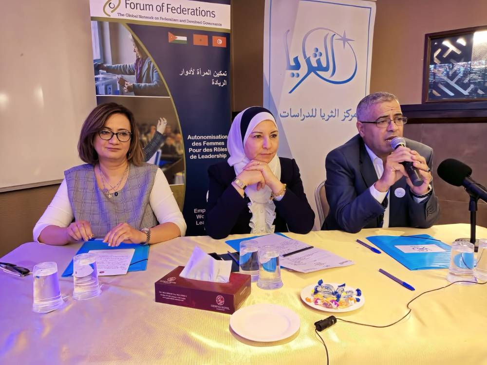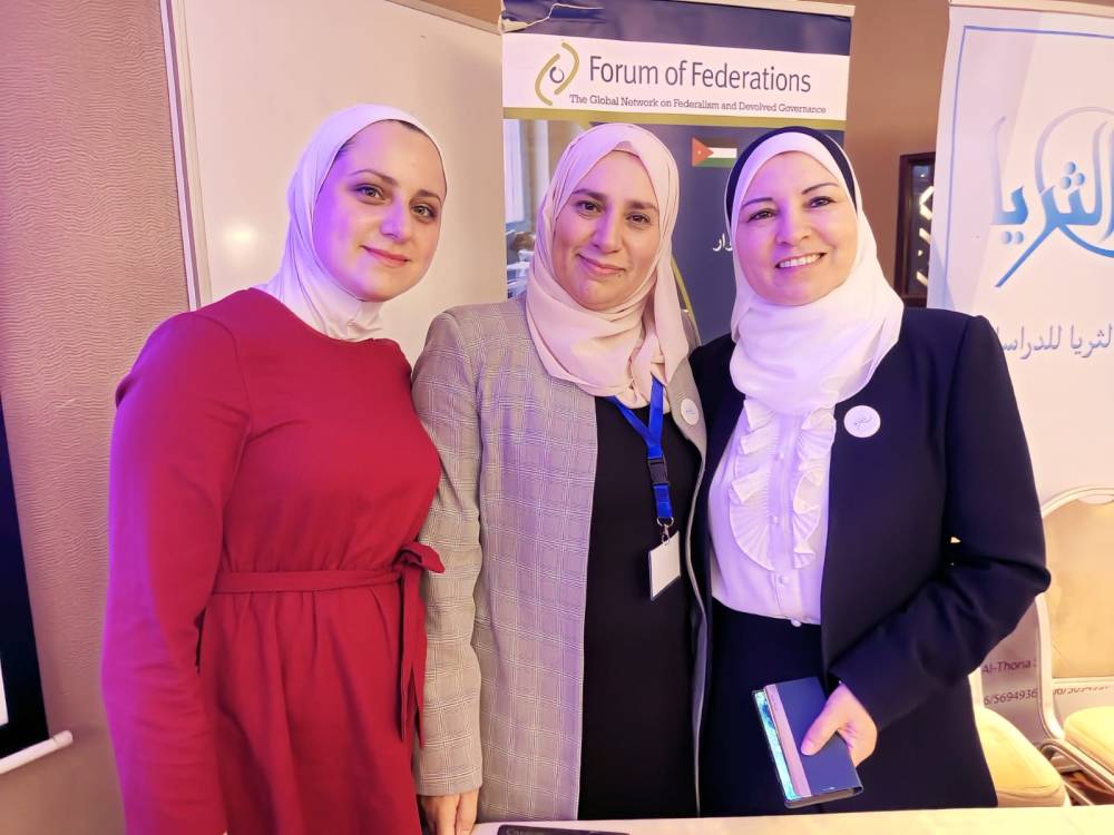 بدورها قالت مديرة مكتب الأردن في منتدى الاتحادات الفيدرالية تالا خريس نشكر مركز الثريا شريكنا في هذا المشروع الذي استهدف جامعات الوسط والجنوب حيث عملنا سويا على مشروع تمكين القيادات النسائية الشابة للمشاركة بالأدوار القيادية وعملية صنع القرار وحققنا النجاح ومستمرين بشراكتنا لخدمة المرأة الأردنية التي لابد من أن يكون لها دور في صنع القرار على المستوى المحلي والوطني من خلال صقل المهارات والمعرفة حتى يكون لها دور في مجتمعها نعول كثيرا على الشباب في المرحلة المقبلة في الحياة السياسية.