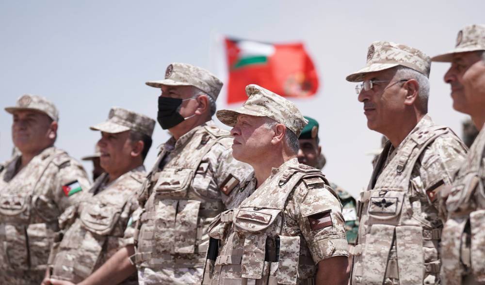 جلالة الملك عبدالله الثاني، القائد الأعلى للقوات المسلحة، يتابع مجريات التمرين التعبوي "الوعد الحق" الذي نفذته تشكيلات ووحدات المنطقة العسكرية الوسطى، بمشاركة لواء الشهيد الملك عبدالله الأول الآلي/90 من المنطقة العسكرية الشرقية ووحدات الأسلحة والخدمات من مختلف الصنوف وكتيبة المشاة البحرية/77 ومجموعة الزوارق المقاتلة