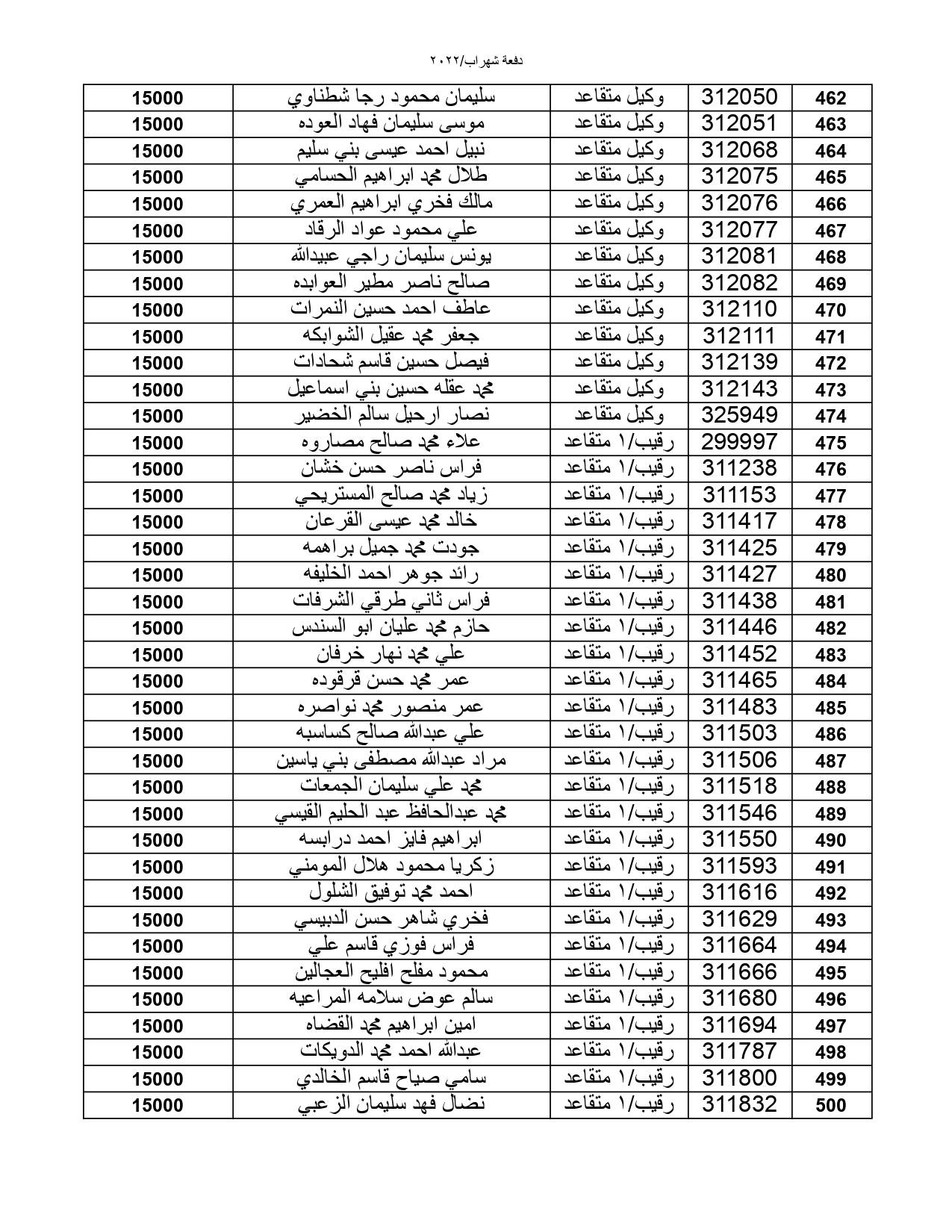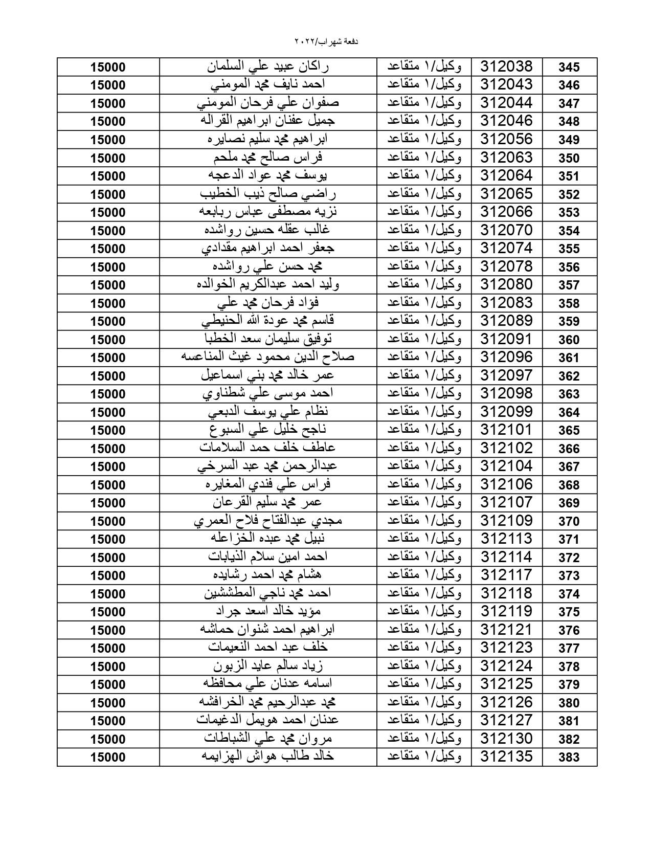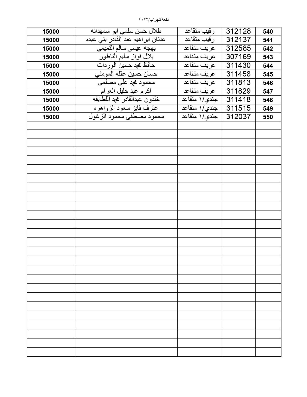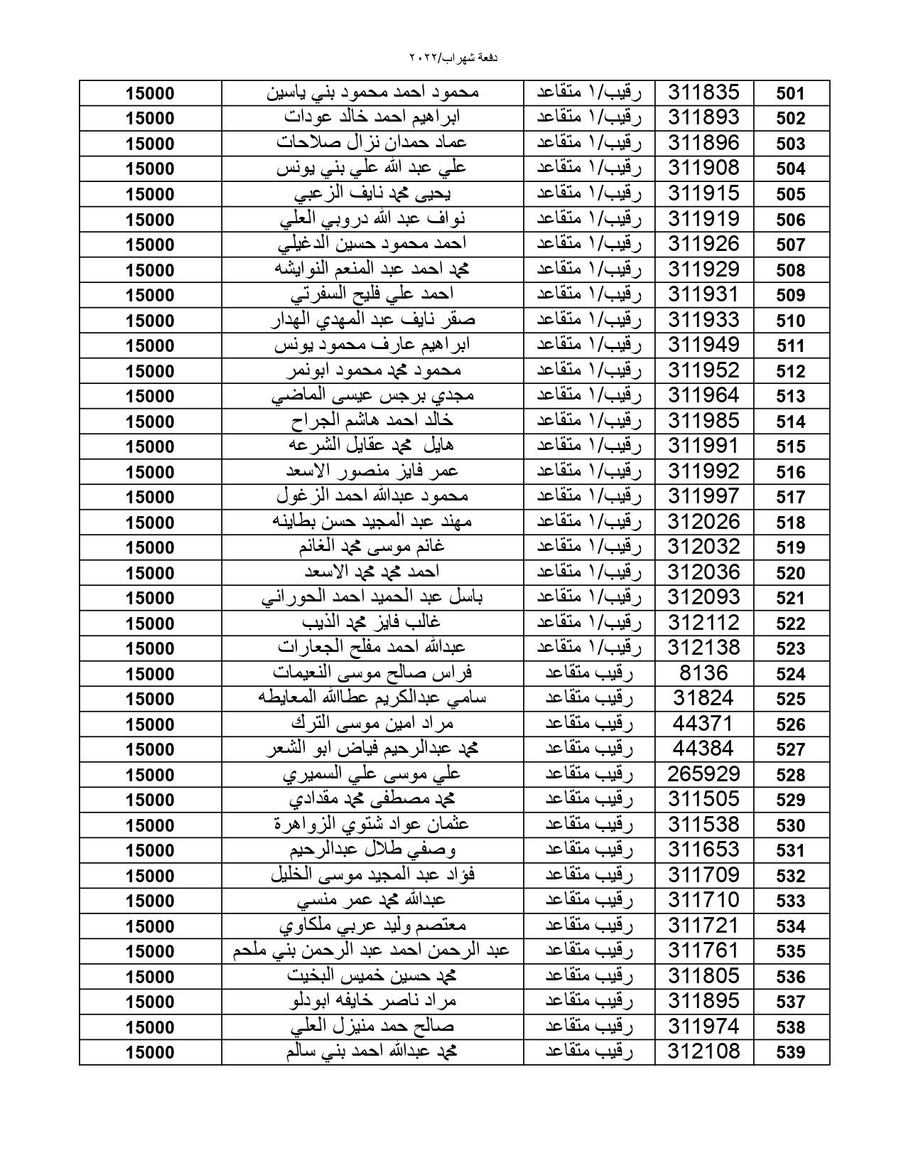 أعلنت القيادة العامة للقوات المسلحة الأردنية – الجيش العربي مديرية الإسكان والاشغال العسكرية، أسماء المستحقين لقرض صندوق الإسكان العسكري لدفعة شهر آب لعام 2022.