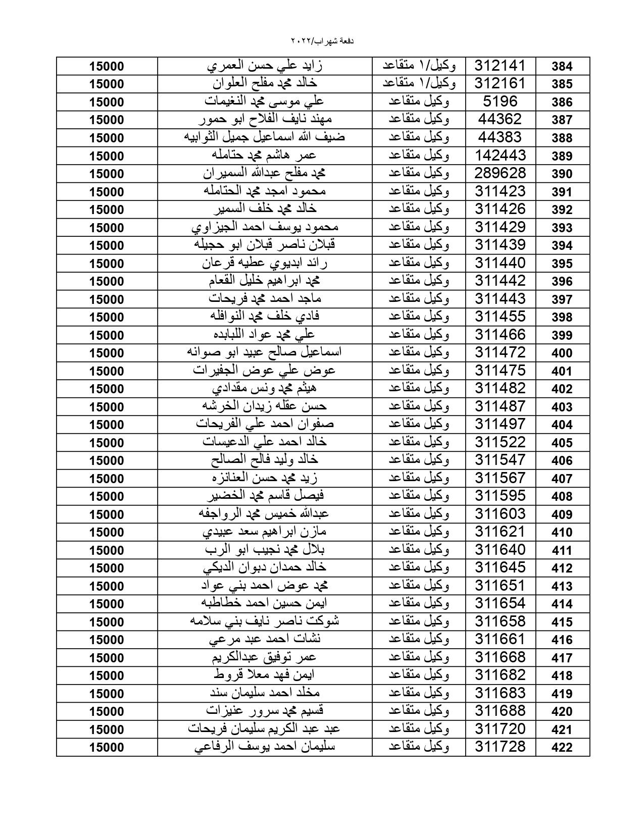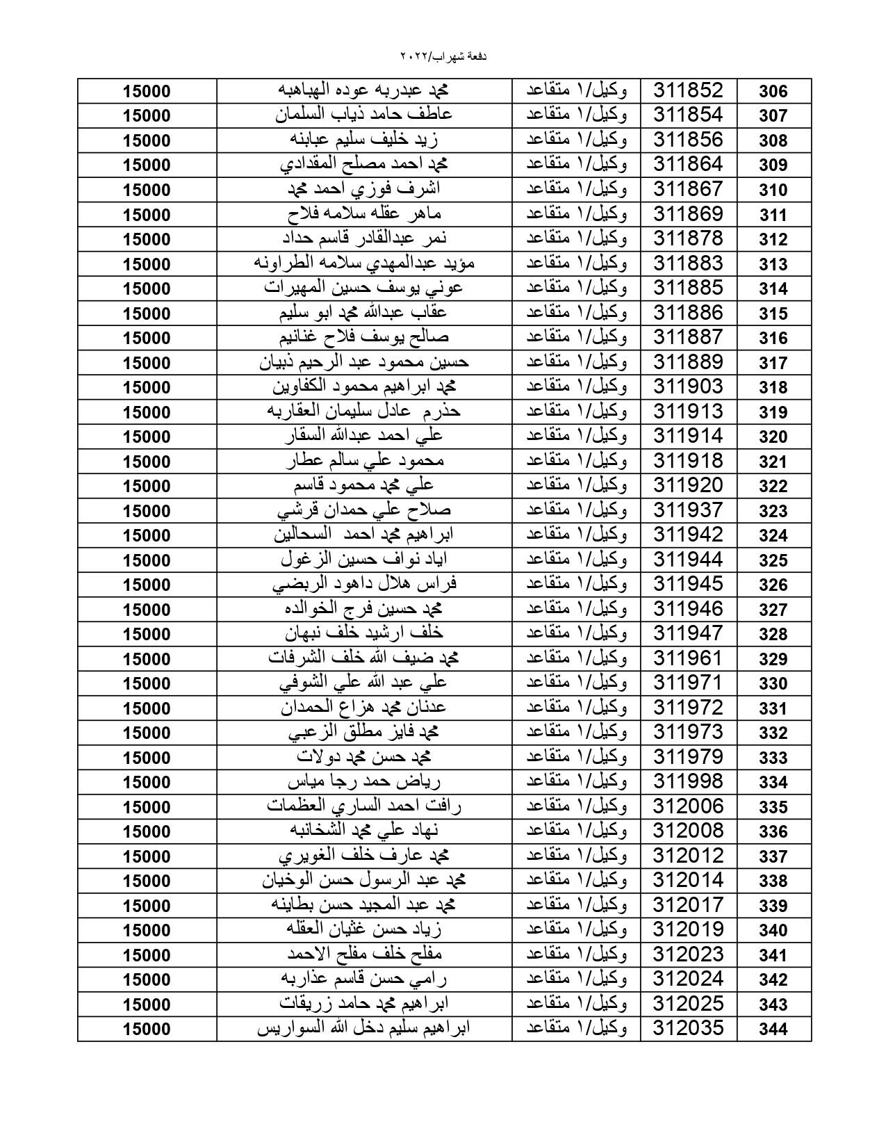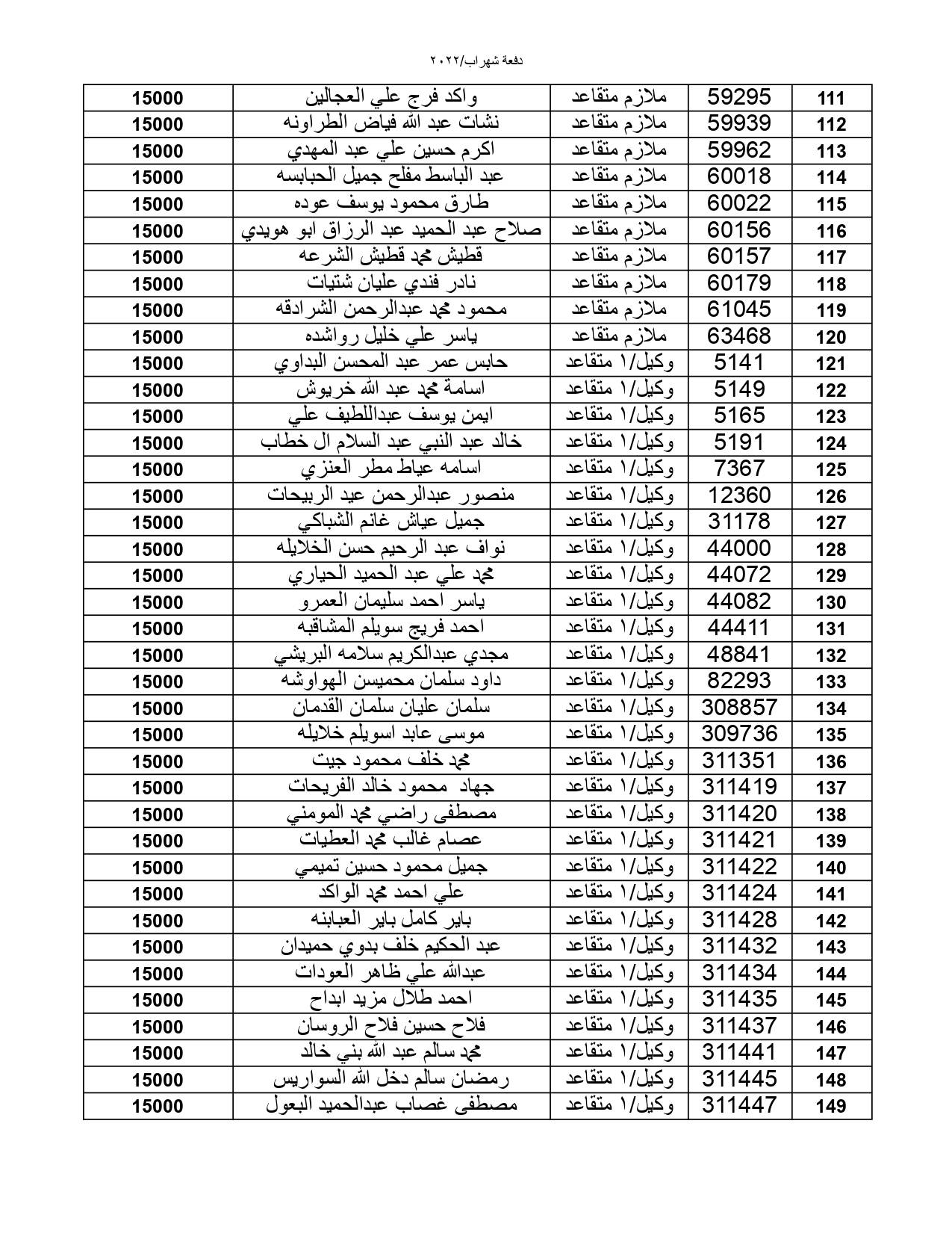 أعلنت القيادة العامة للقوات المسلحة الأردنية – الجيش العربي مديرية الإسكان والاشغال العسكرية، أسماء المستحقين لقرض صندوق الإسكان العسكري لدفعة شهر آب لعام 2022.