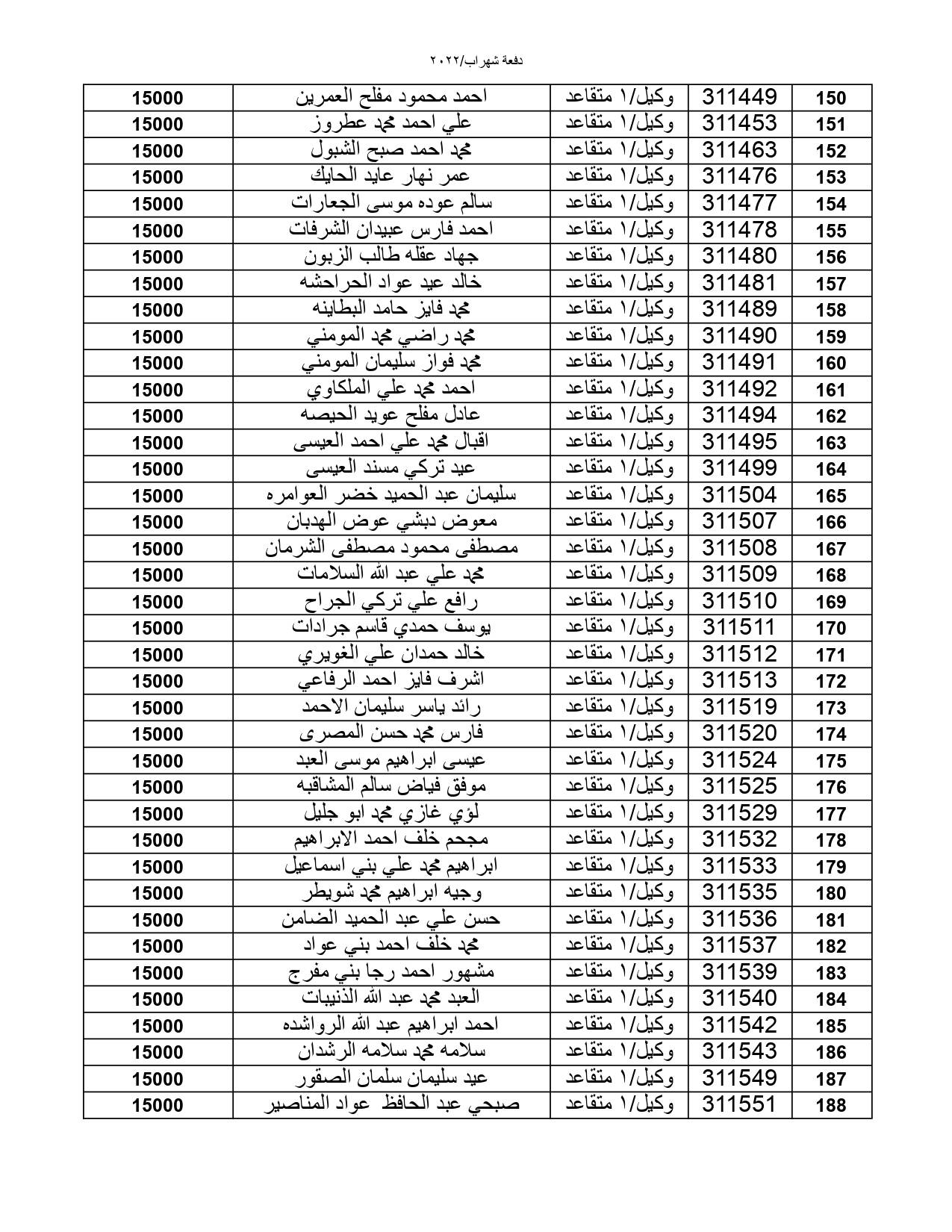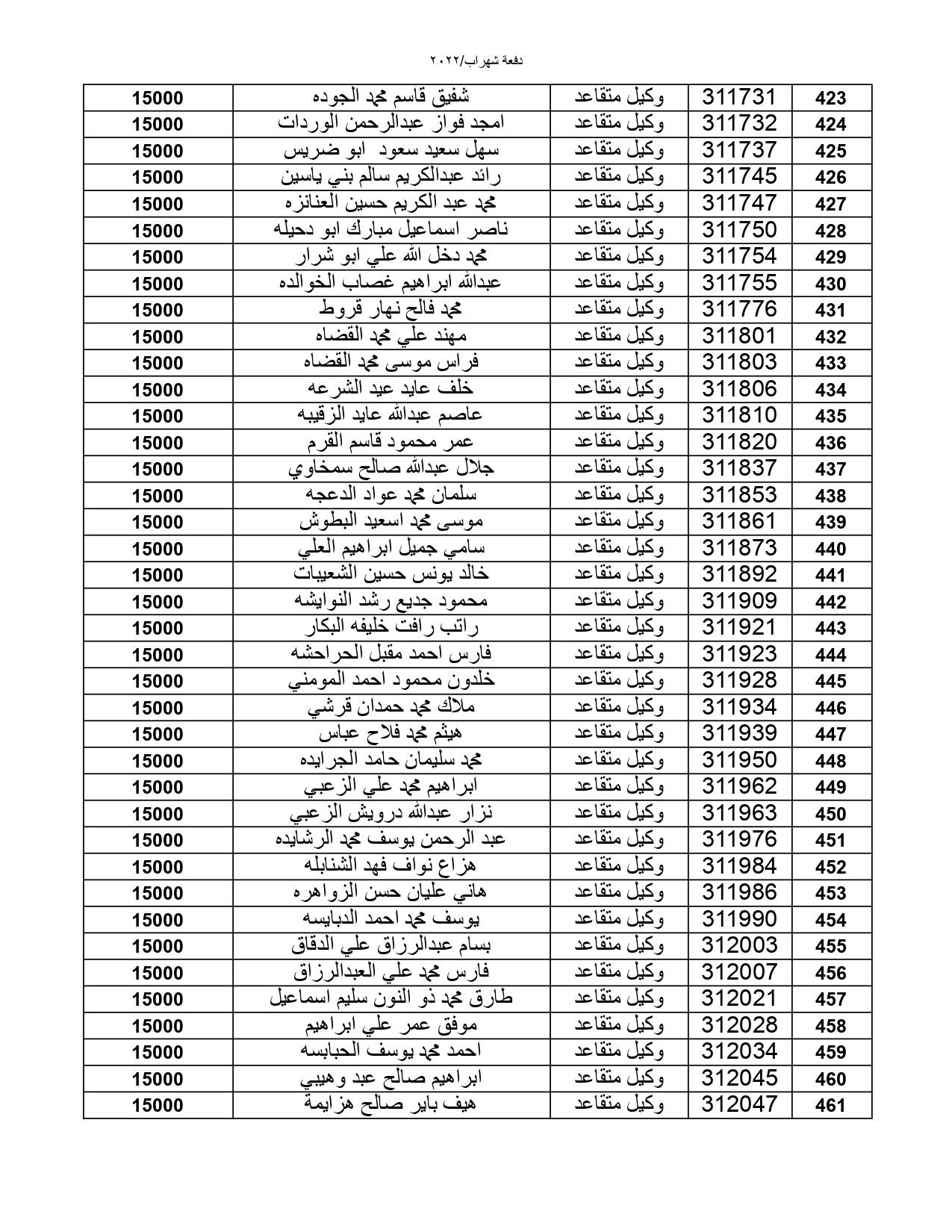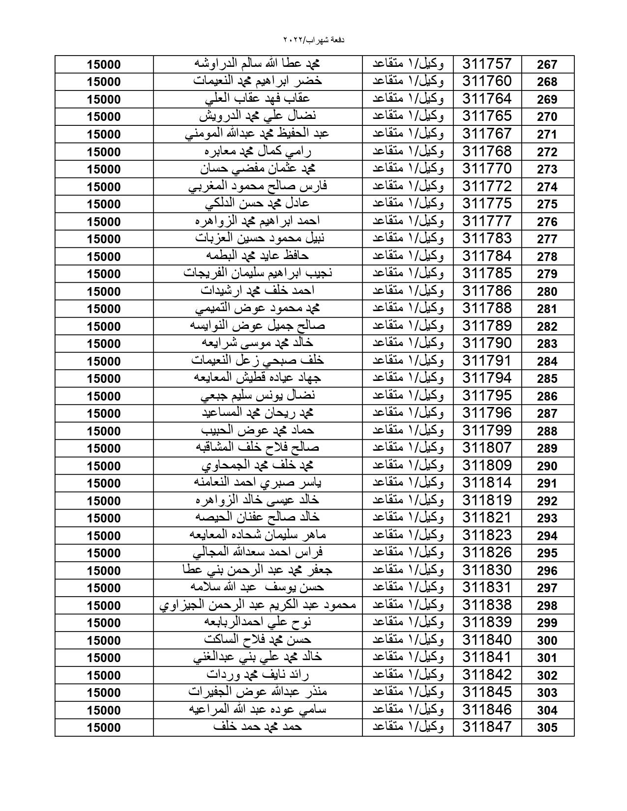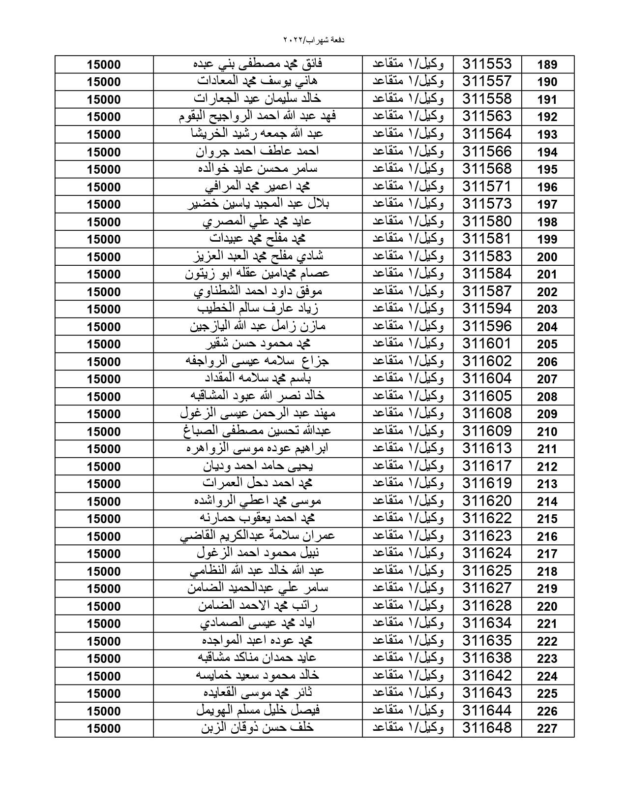 أعلنت القيادة العامة للقوات المسلحة الأردنية – الجيش العربي مديرية الإسكان والاشغال العسكرية، أسماء المستحقين لقرض صندوق الإسكان العسكري لدفعة شهر آب لعام 2022.