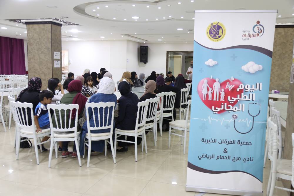 أقامت جمعية الفرقان الخيرية ونادي مرج الحمام الرياضي ، يوماً طبياً مجانياً استهدف الفئات الفقيرة في منطقة مرج الحمام .