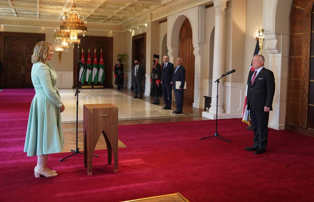 وحضر مراسم تقبل أوراق الاعتماد رئيس الديوان الملكي الهاشمي يوسف حسن العيسوي، ونائب رئيس الوزراء ووزير الخارجية وشؤون المغتربين أيمن الصفدي.