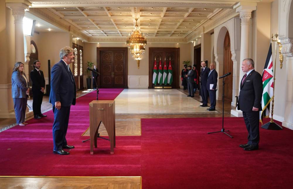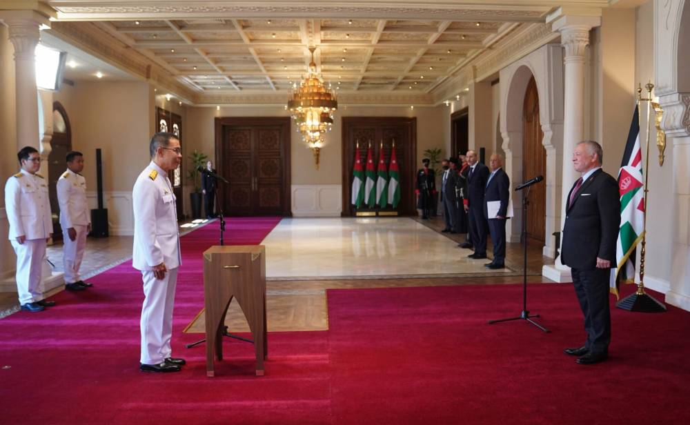 فقد تقبل جلالة الملك عبدالله الثاني أوراق اعتماد كل من سفير مملكة تايلاند سوباك برون تورا، وسفير مملكة إسبانيا ميغيل دي لوكاس غونثالث، وسفيرة إيرلندا ماريان بولجر، وسفير مملكة بلجيكا سيرج ديكشن، وسفيرة الاتحاد الكونفدرالي السويسري إيميليا جيورجيفا، والسفير غير المقيم لجمهورية الأرجنتين سيبستيان زافالا، والسفير غير المقيم لجمهورية مالطا ريموند سارسيرو، والسفير غير المقيم لجمهورية الإكوادور باسكوال ديل شيوبو.