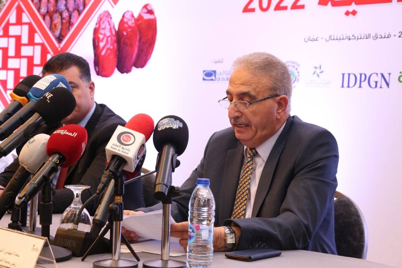 أعلن وزير الزراعة المهندس خالد الحنيفات عن تنظيم المهرجان الدولي الرابع للتمور الأردنية بالتعاون مع جائزة خليفة الدولية لنخيل التمر والابتكار الزراعي وجمعية التمور الأردنية في عمّان خلال الفترة 21-23 تشرين الثاني/نوفمبر 2022. بمكرمة ودعم من سمو الشيخ منصور بن زايد آل نهيان نائب رئيس مجلس الوزراء وزير ديوان الرئاسة بدولة الإمارات العربية المتحدة، مشيداً بجهود كافة الجهات المهنية لتنمية وتطوير قطاع التمور الأردنية، جاء ذلك خلال مؤتمر صحفي عُقِدَ يوم الأربعاء 14 سبتمبر 2022 بفندق انتركونتيننتال عمّان، بحضور أحمد علي محمد البلوشي سفير دولة الإمارات العربية المتحدة بالمملكة الأردنية الهاشمية، والدكتور عبد الوهاب زايد أمين عام جائزة خليفة الدولية لنخيل التمر والابتكار الزراعي بدولة الإمارات العربية المتحدة، والمهندس أنور حداد رئيس جمعية التمور الأردنية، وعدد من ممثلي المنظمات الإقليمية والدولية المقيمين بالأردن.
