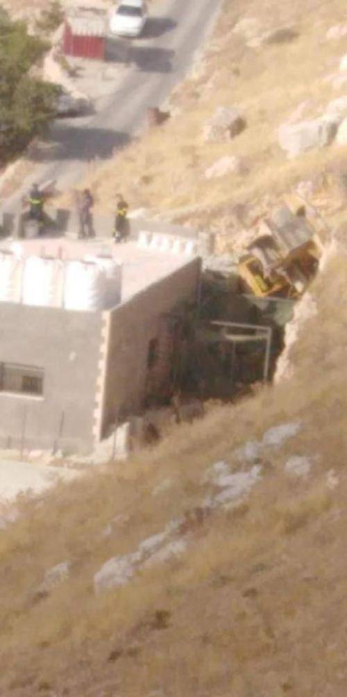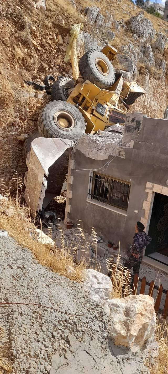 ماذا حدث بعد تدهور جرافة على أحد المنازل في البلقاء؟ صور