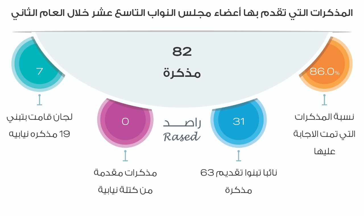 وبخصوص المذكرات النيابية فإن راصد يوصي مجلس النواب والأمانة العامة أن يتم وضع نموذج مخصص للمذكرات التي يتم تقديمها سيما وأن آلية التوقيع عليها لا ينسجم والشفافية البرلمانية خصوصاً وأن أسماء النواب لا يمكن معرفتها عند التوقيع باليد، لذا يتوجب أن يتم طباعتها ونشرها بشكل شفاف على الموقع الالكتروني لتتعرف القواعد الانتخابية على آراء نوابها ومواضيع المذكرات التي تم التوقيع عليها.