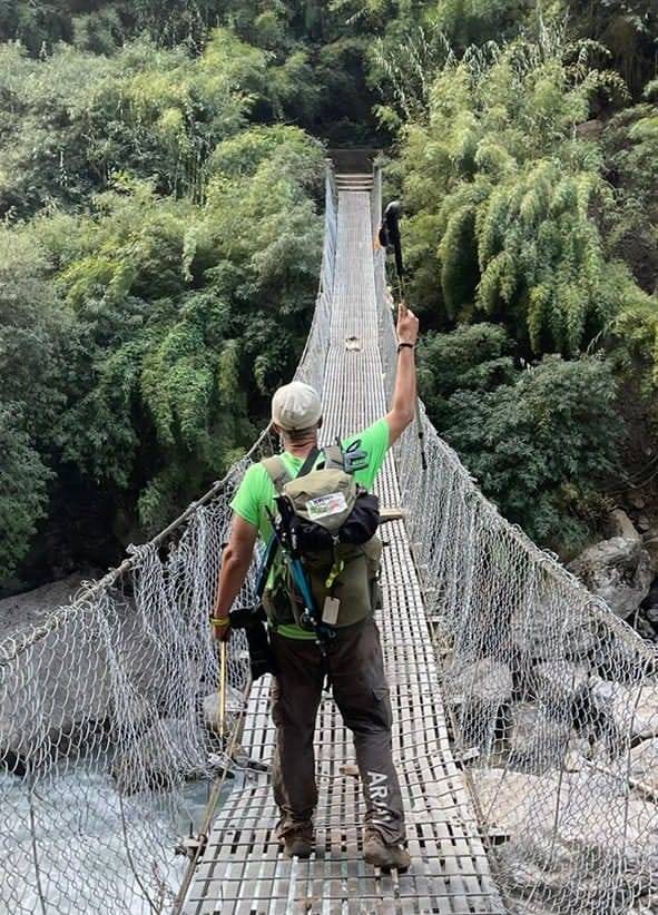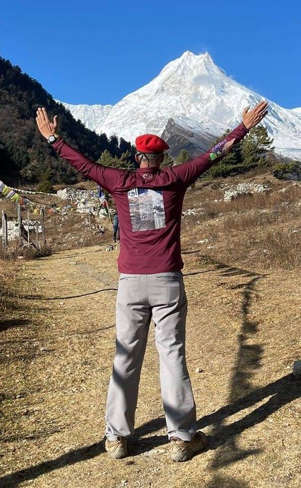 وقال المغامر والمتواجد حاليا في جبال الهمالايا: "اليوم وصلنا لارتفاع 4000 متر بعد اجتياز مسافة الأعداد 80 كم وباقي 90 كم لنبلغ القمة والنزول من ارتفاع 17200 قدم حاملين راية الوطن ورسالته التاريخية والثقافية”.