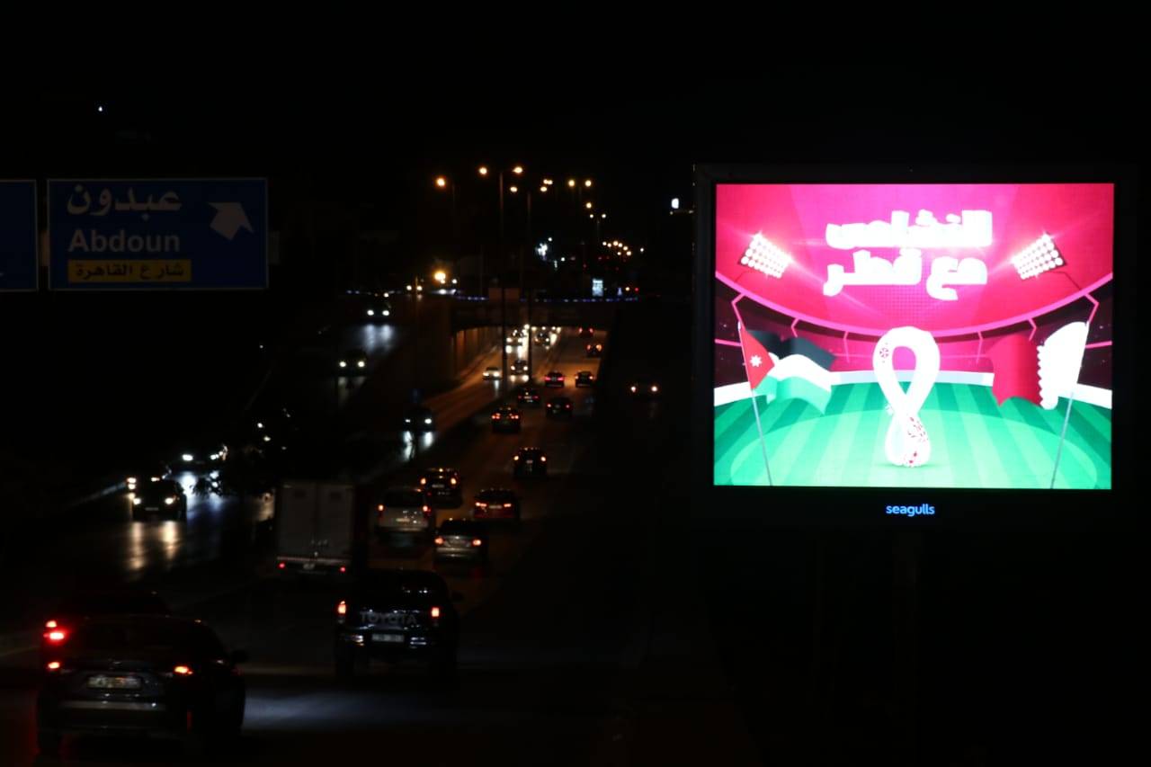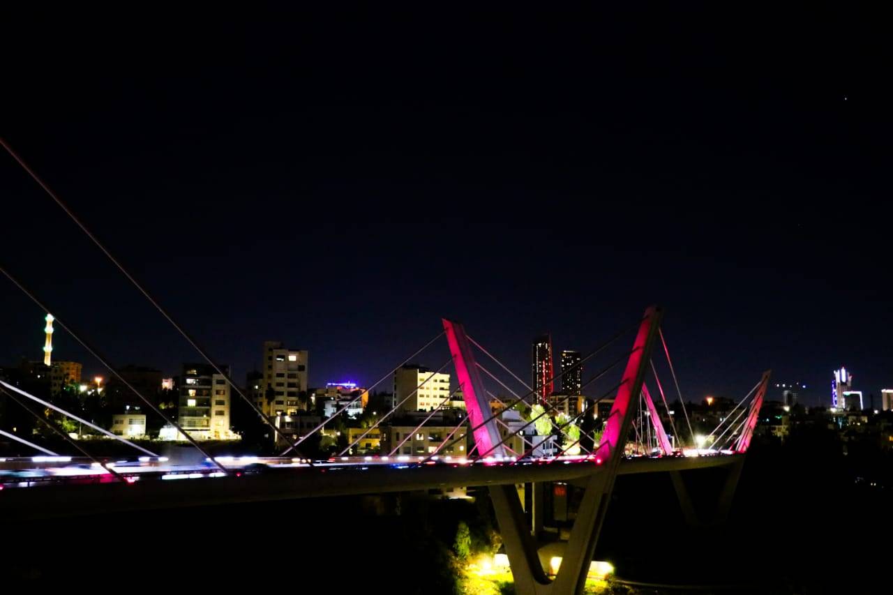 أضاءت أمانة عمان الكبرى جسر عبدون باللون العنابي احتفاءً بببدء بطولة كأس العالم لكرة القدم في دولة قطر، وضمن حملة النشامى مع قطر