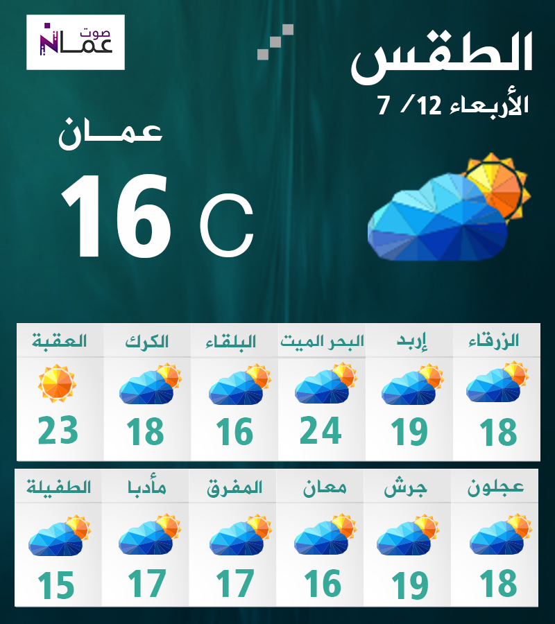 وبحسب "الأرصاد الجوية"، تكون الأجواء مائلة للبرودة بوجة عام في أغلب المناطق ، مع ظهور الغيوم على ارتفاعات مختلفة، والرياح جنوبية شرقية معتدلة السرعة تنشط احياناً.