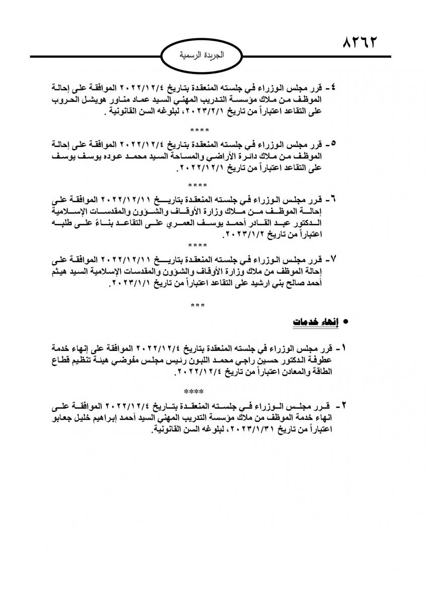 صدر في عدد الجريدة الرسمية، قرارات مجلس الوزراء، اليوم الخميس، والتي شملت إحالة موظفين حكوميين إلى التقاعد، بالإضفاة إلى