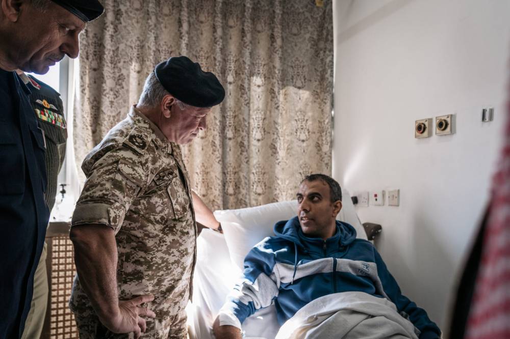 عاد جلالة الملك عبدالله الثاني مصابي حادثة الحسينية بمحافظة معان، واللذين يرقدان على سرير الشفاء في مدينة الحسين الطبية.
