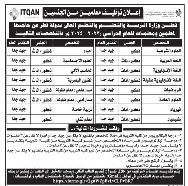 وطالبت المؤسسات الأسماء التالية اصطحاب الوثائق اللازمة للتعيين.