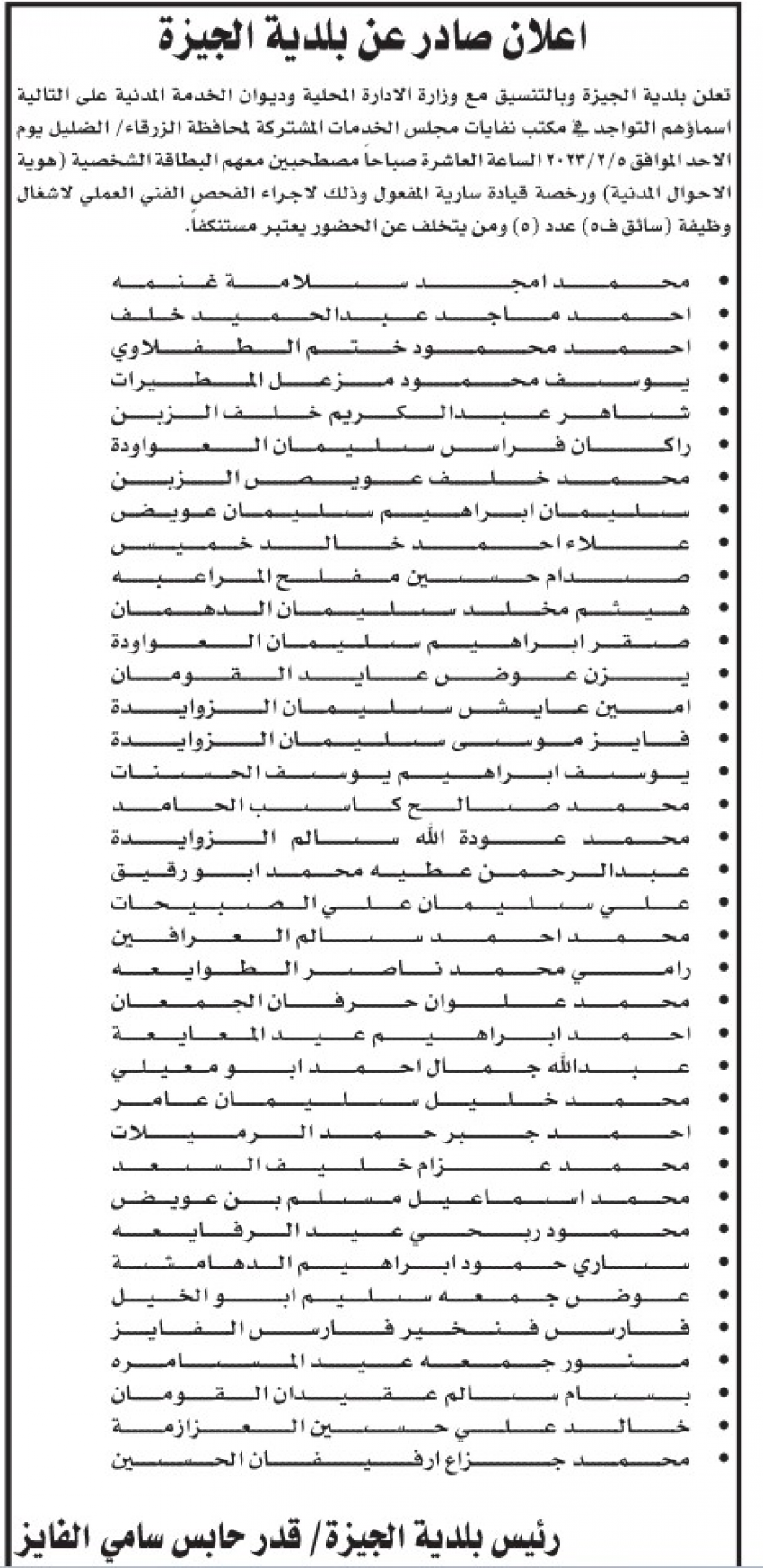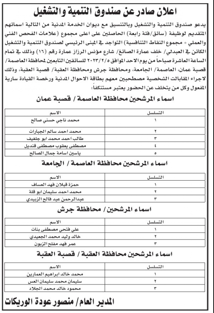 وجه ديوان الخدمة المدنية،دعوة لأشخاص لإجراء مقابلات شخصية، ولغايات تقديم الاختبارات، وذلك بالتنسيق مع عدة وزارات ومؤسسات حكومية.