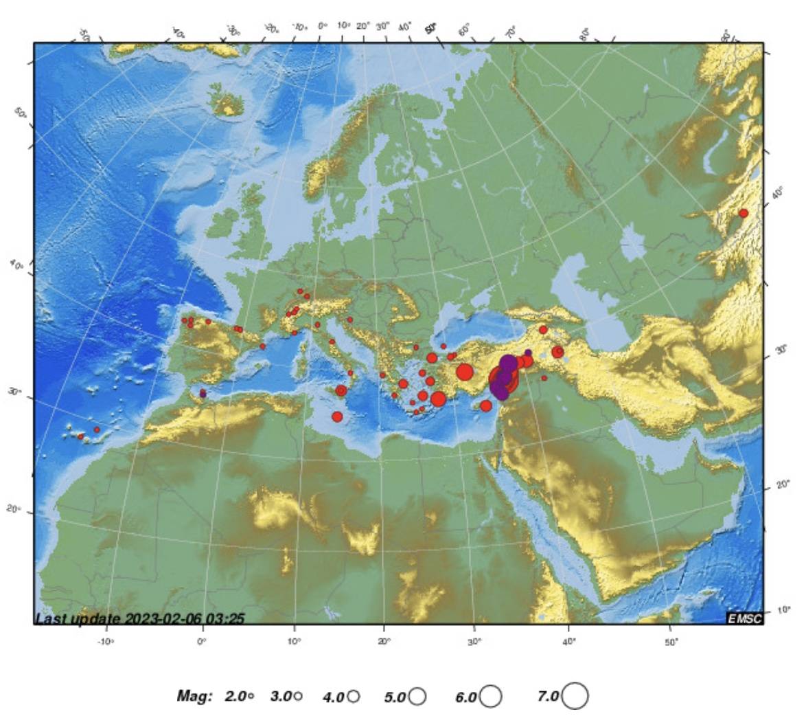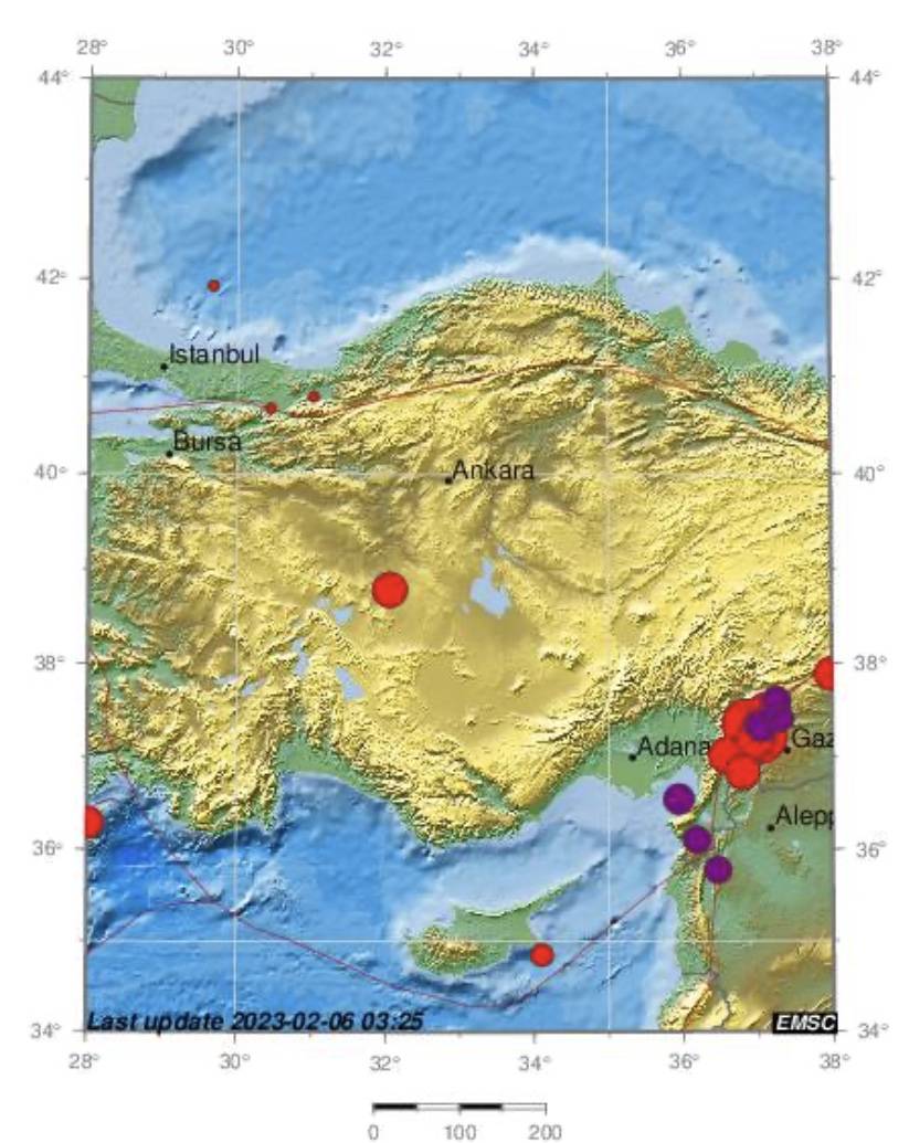 أشار أستاذ الجيوفيزيا وعلم الزلازل في الجامعة الأردنية الدكتور نجيب أبو كركي إن زلزالا كبيرا بقوة 7.8 سبب دمارا وخسائر تبعته عشرات الهزات الارتدادية ضربت جنوب تركيا فجر هذا اليوم.