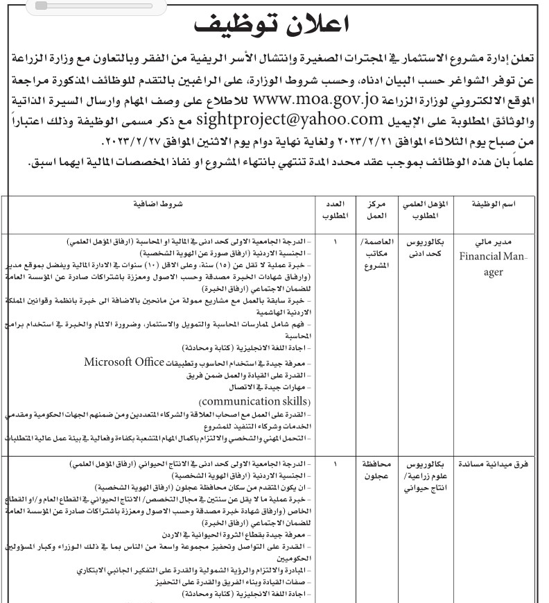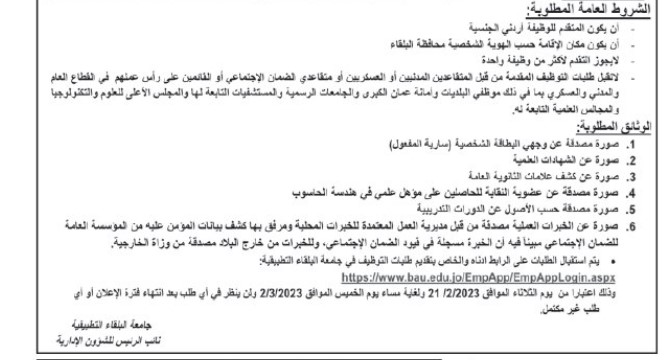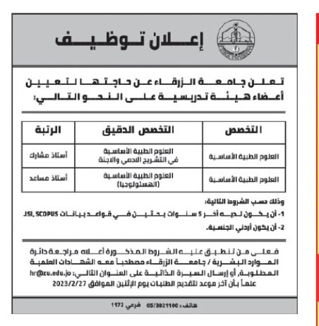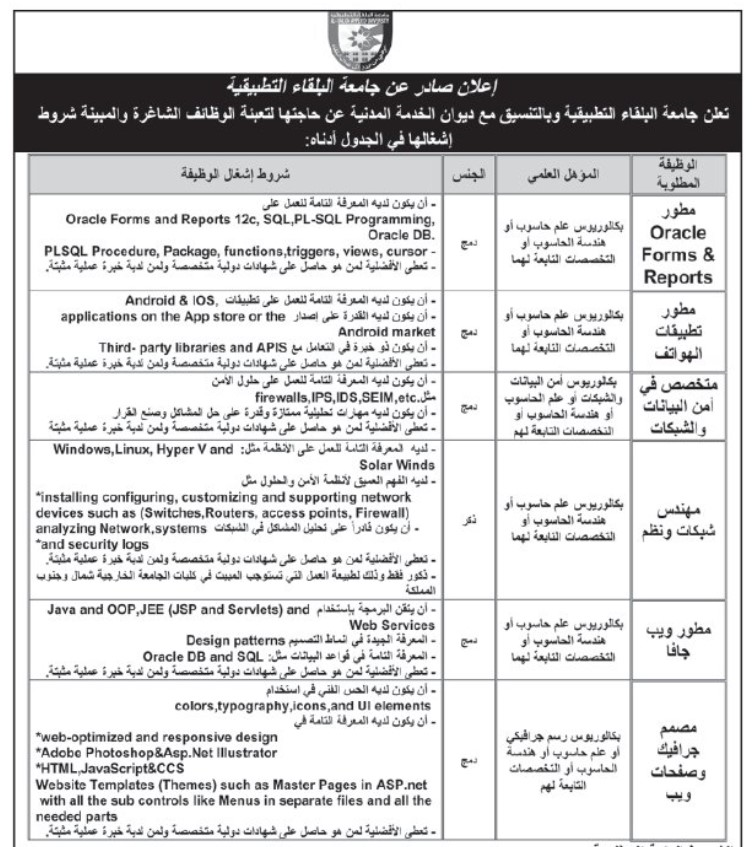 كما أعلنت بعض المؤسسات عن حاجتها لتعبئة بعض الشواغر.