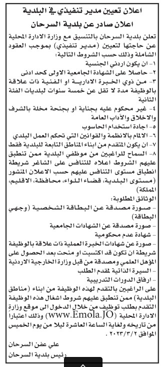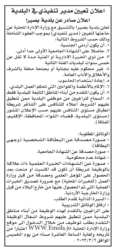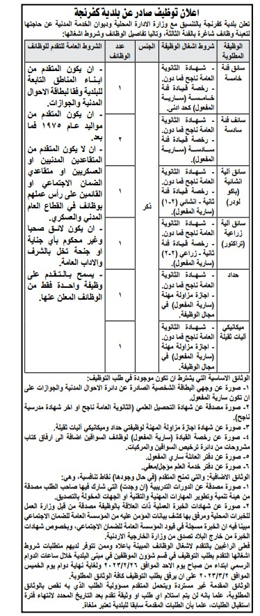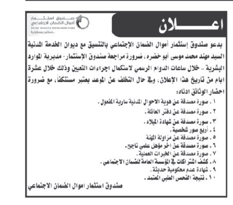 وأعلن عن وظائف شاغرة بالتنسيق مع الوزارات والمؤسسات حكومية .